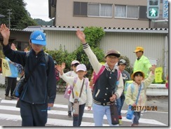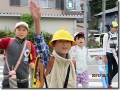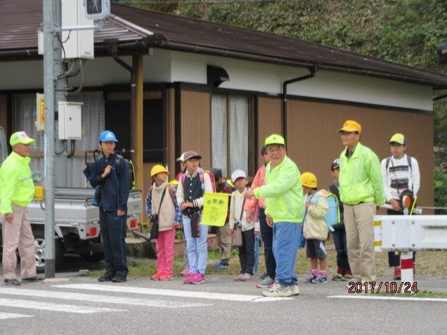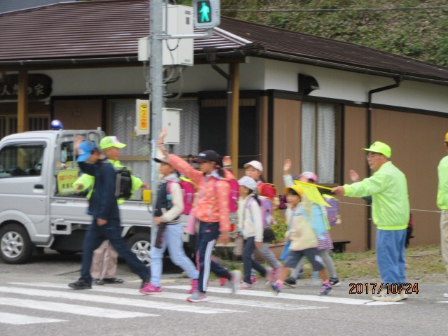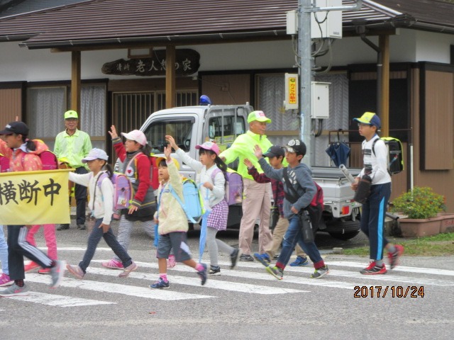 登校時には、毎日、スクールガードのみなさんが、付き添って歩いてくださったり、信号交差点のところで見守ってくださったりしています。
