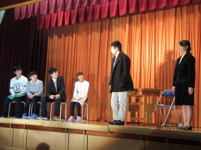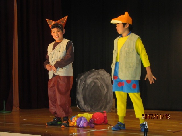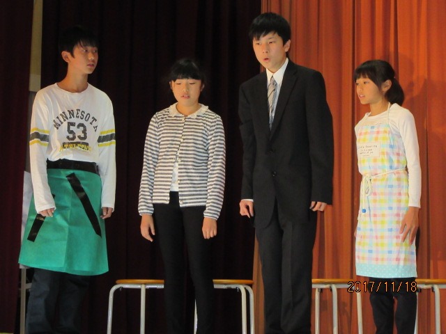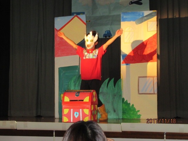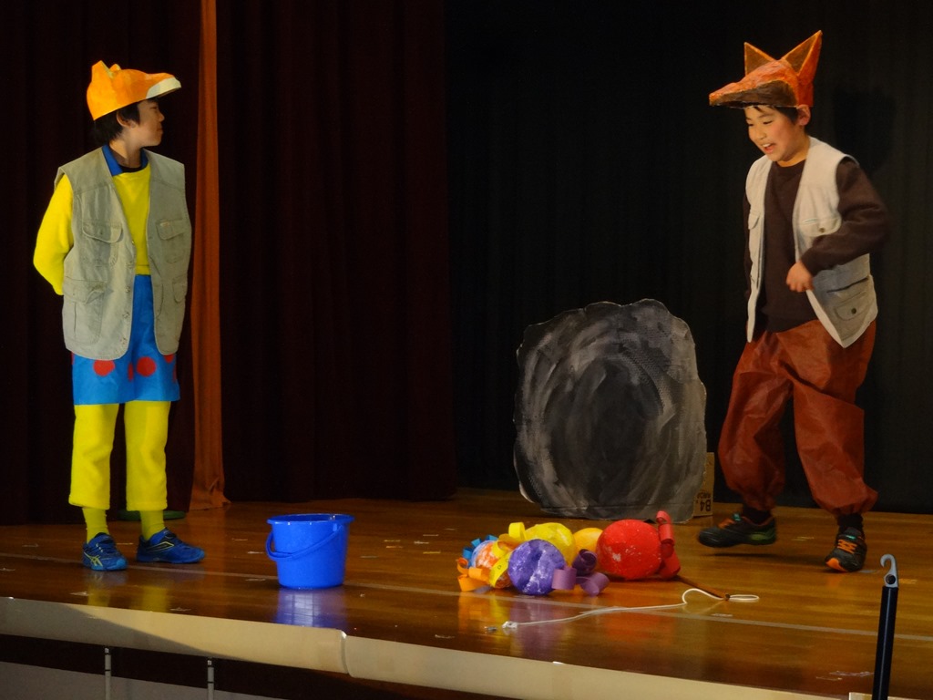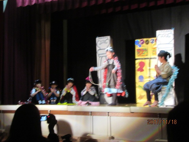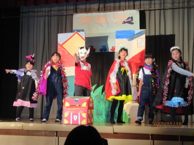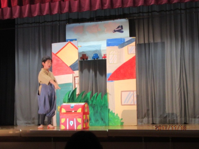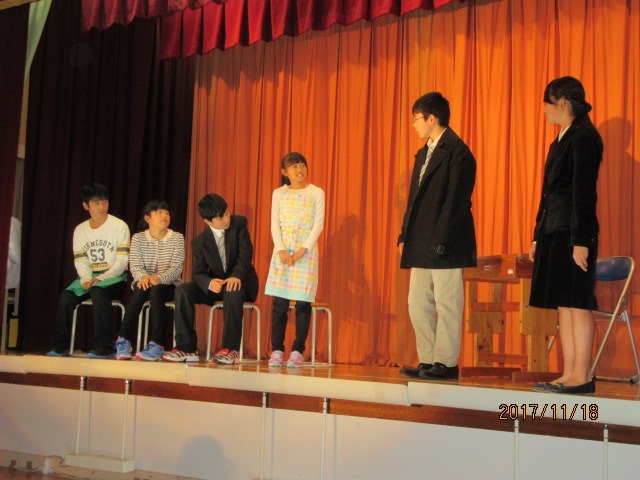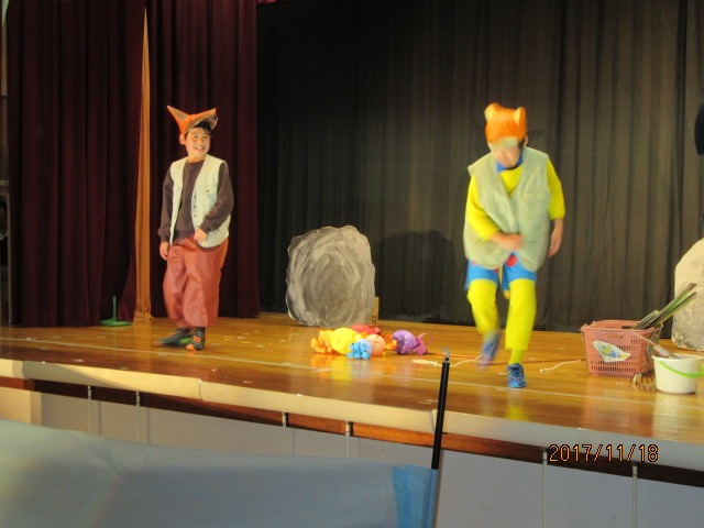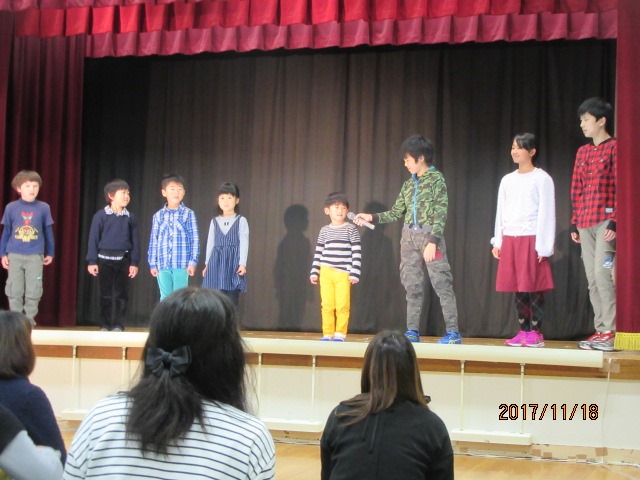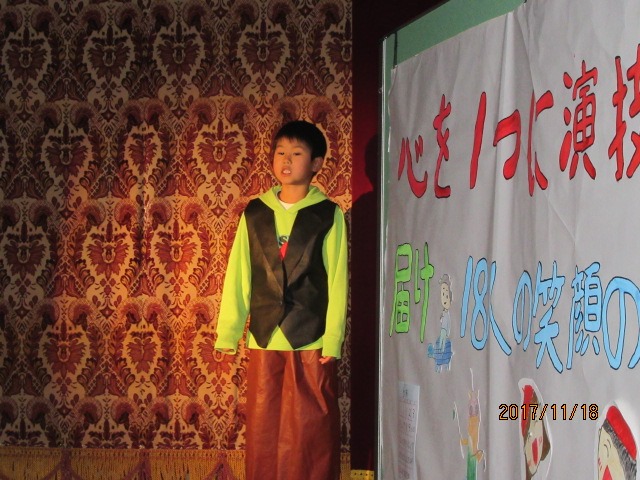 少人数の学校ですので、学級ごとにした劇の台詞は、一人何十もあり、中には長い台詞も数多くありました。けれども、子どもたちは、短期間にそれを覚え、学級の仲間と協力して、劇を創り上げました。