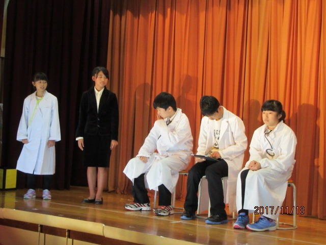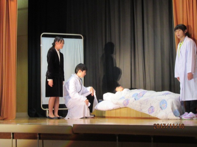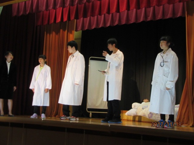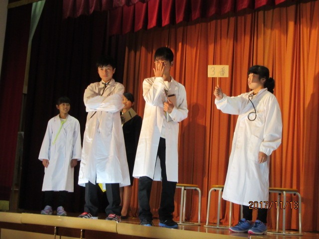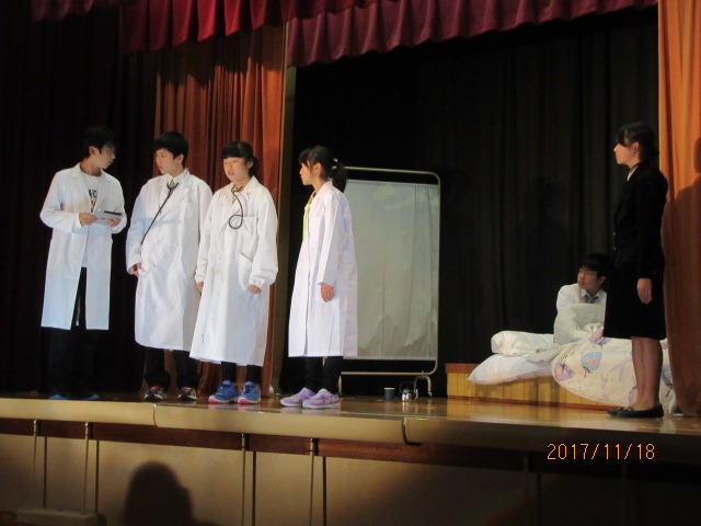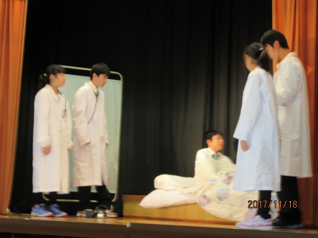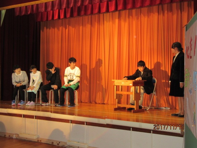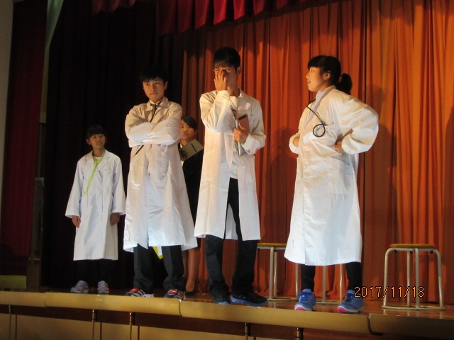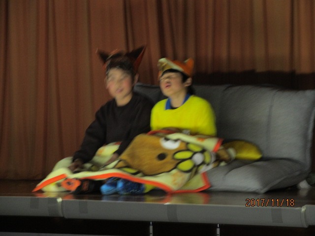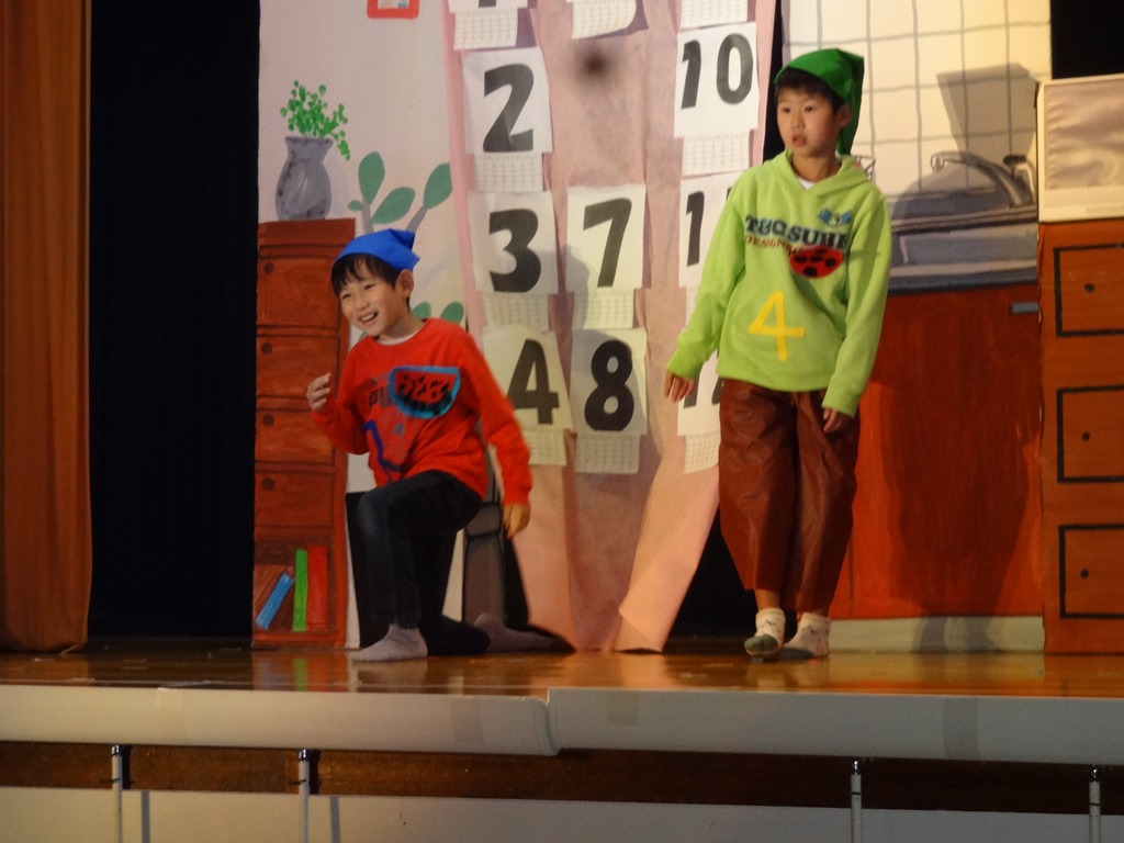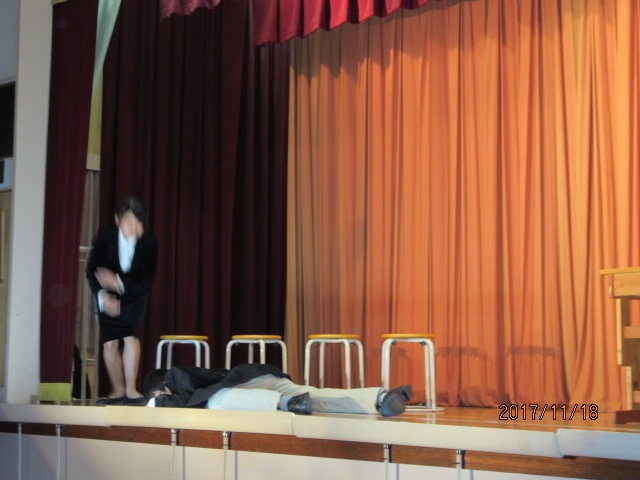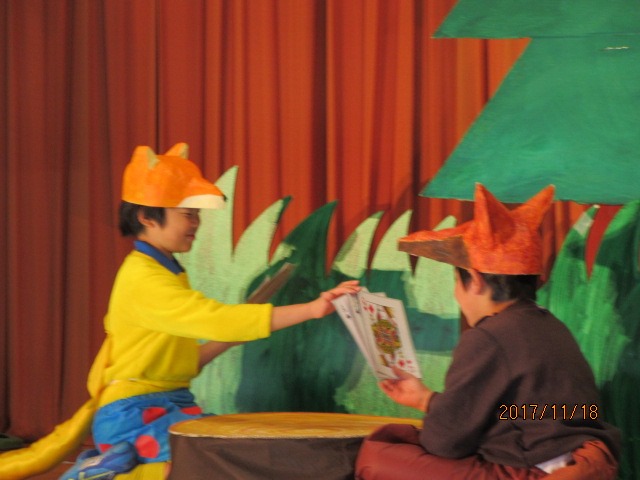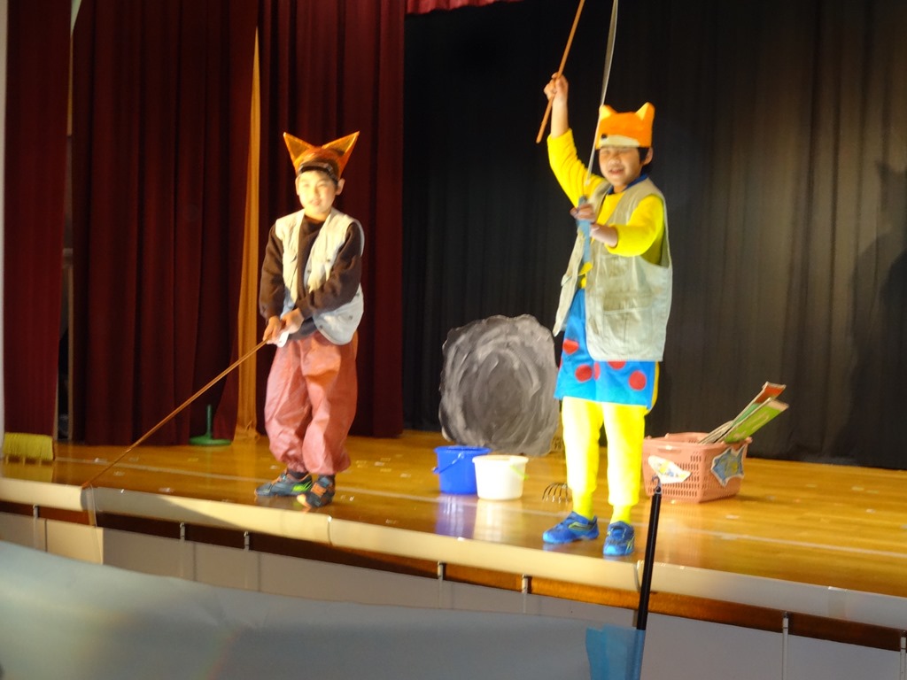 少人数の学校ですので、学級ごとにした劇の台詞は、一人何十もあり、中には長い台詞も数多くありました。けれども、子どもたちは、短期間にそれを覚え、学級の仲間と協力して、劇を創り上げました。