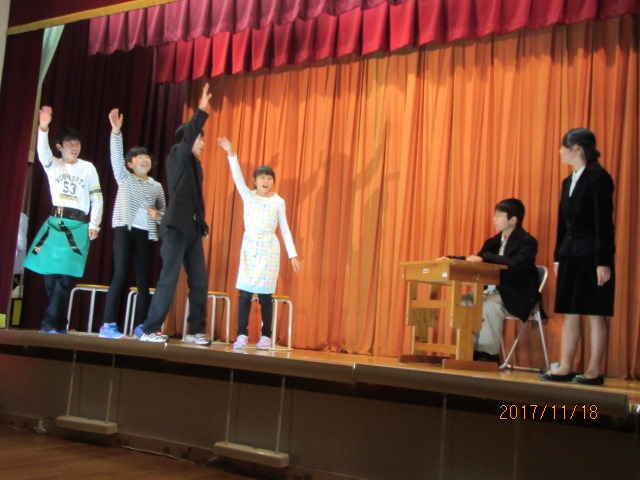 今日も、一生懸命演技をする子どもたちを見て、子どもたちの努力と能力は本当にすばらしいと、改めて感心しました。そして、全員が主役、全員が名わき役だと思いました。