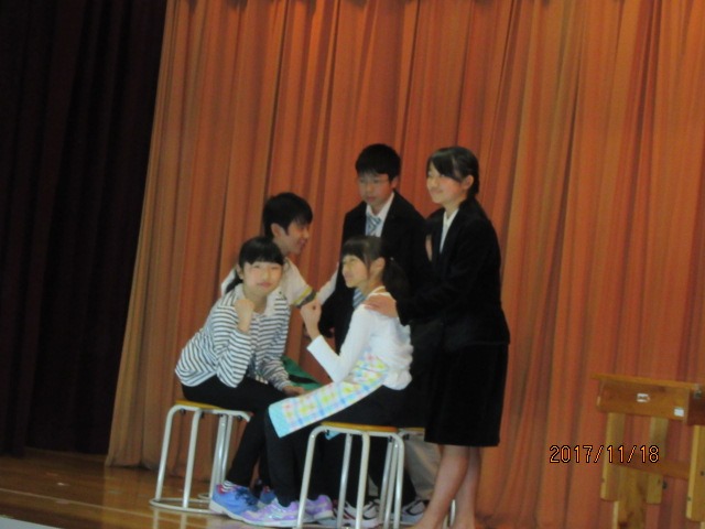 特に、6人の6年生は、気を利かして動いていました。段取りのよい大道具の配置や、優しい下学年への出番の案内や励ましの声かけなど、さすが、6年生だと思うことがたくさんありました。