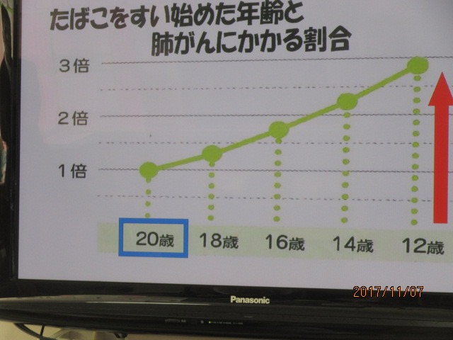 「たばこは思っていたよりも危険なので、吸わない方がいいと思いました。」「たばこを吸うと損なことばかりなので、吸いたくないです。」「自分の健康のことだけでなく、周りの人のことも考えたいです。」「たばこは健康によくないので、誘われても断りたいです。」などと、自分の考えを自分の言葉で語りました。