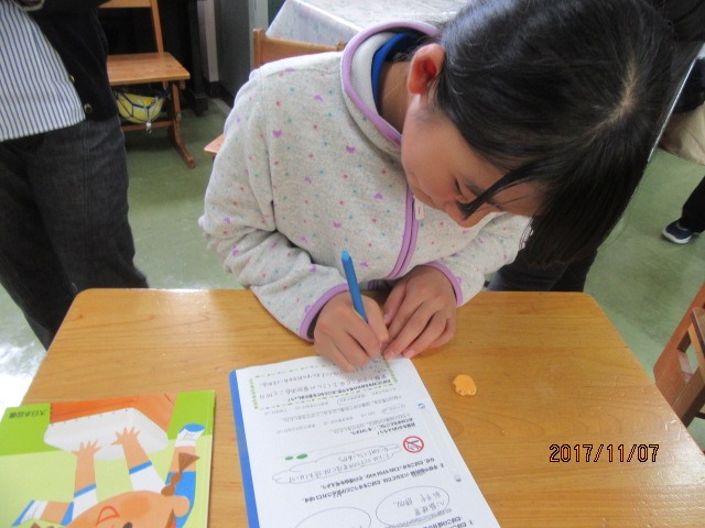 そして、授業の終わりには、子どもたちは、たばこの害と健康について学習したことの振り返りを書き、伝え合いました。