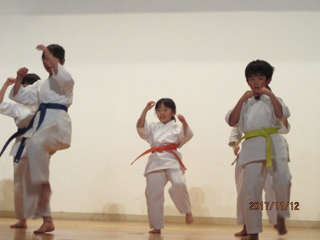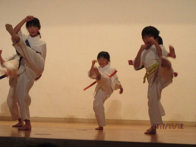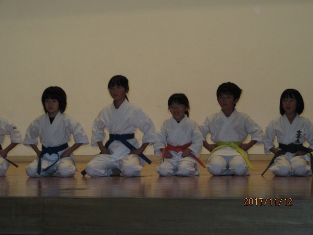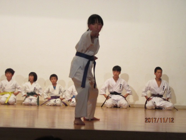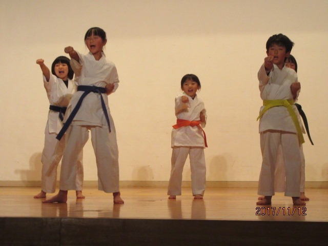 町内全小学校の児童と豊橋特別支援学校山嶺教室の生徒による音楽や群読の発表後、設楽町教育委員会が主催しているウィークエンドスポーツサークル「空手」の演武がありました。