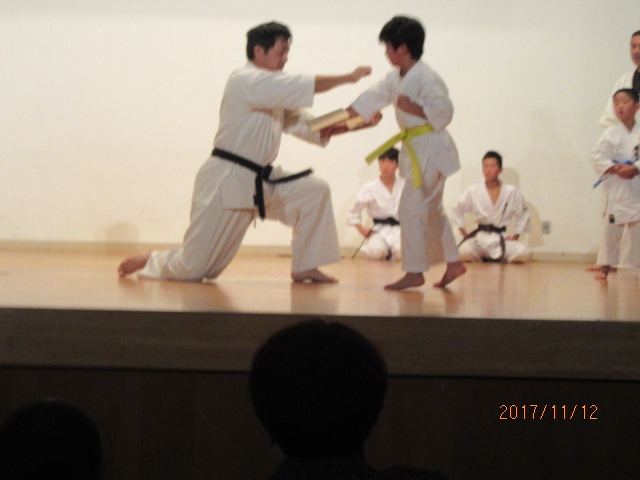 本校の二人の児童もステージに登場し、技を披露しました。他の子どもたちもそうでしたが、二人も、大変礼儀正しく、かけ声、姿、ともに勇ましく、とても格好よかったです。