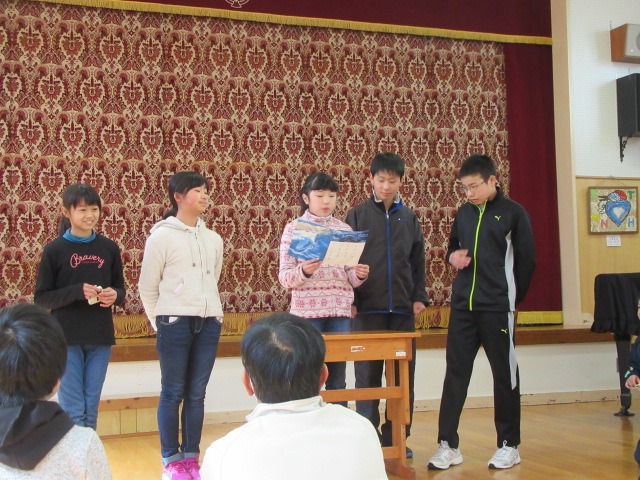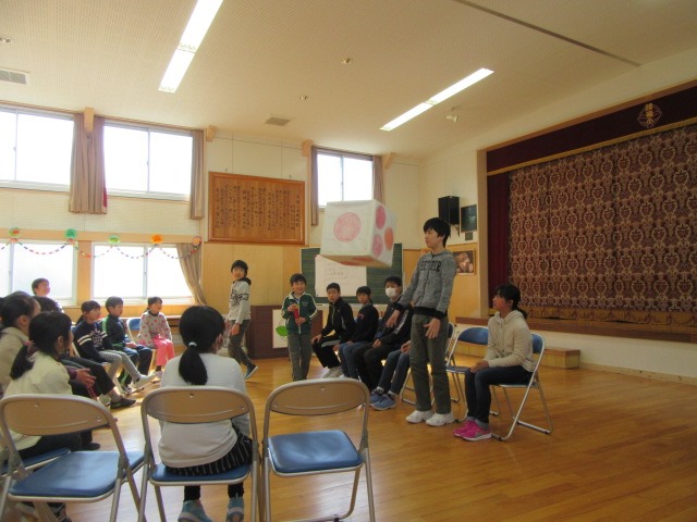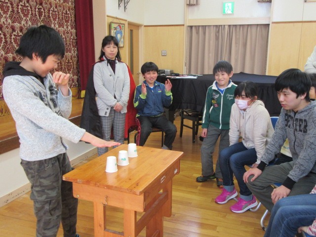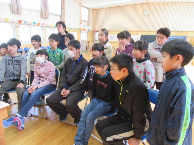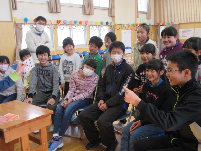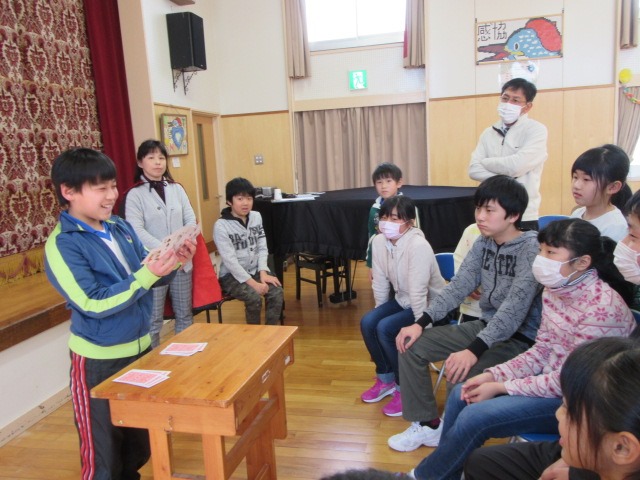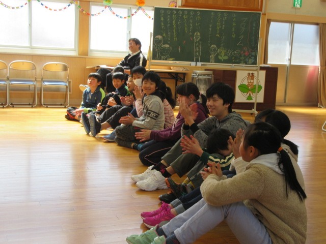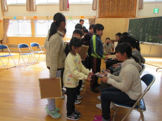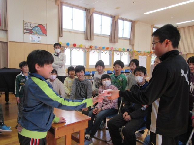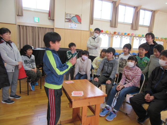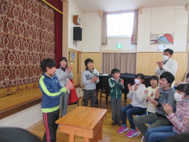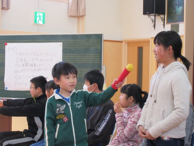 オリンピック種目も入った楽しいジェスチャーゲームや感謝の言葉を完成させるジグソーパズルの組み立て、見事なトランプの手品、6年生による6年間の思い出クイズ、6年生への思い出インタビュー、「いのちの歌」のきれいな合唱、手作りのアルバムとコルクボードのプレゼントなど、どれもすばらしかったです。
