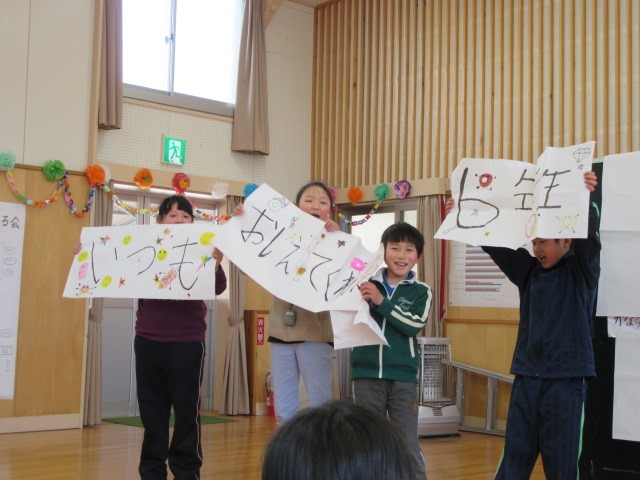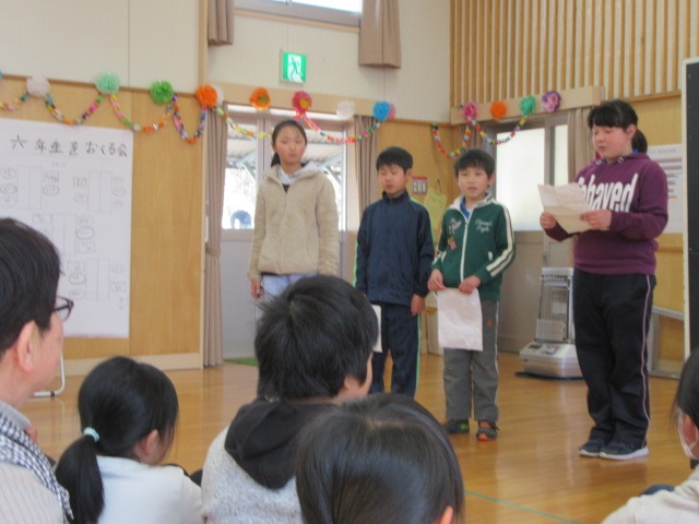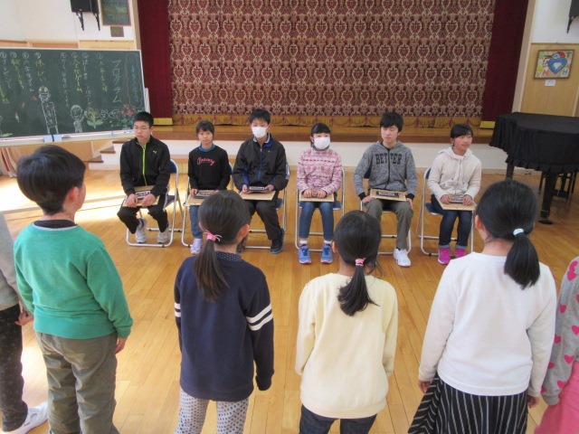 3月12日、3~5年生が中心となって計画、準備した「6年生を送る会」がありました。