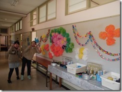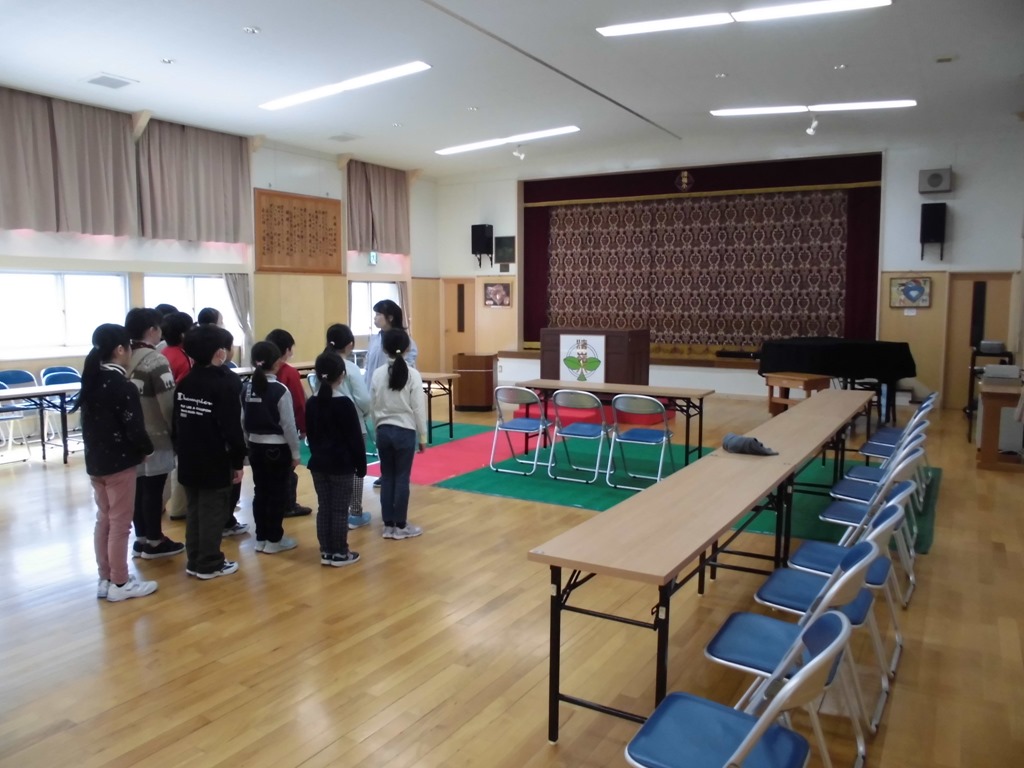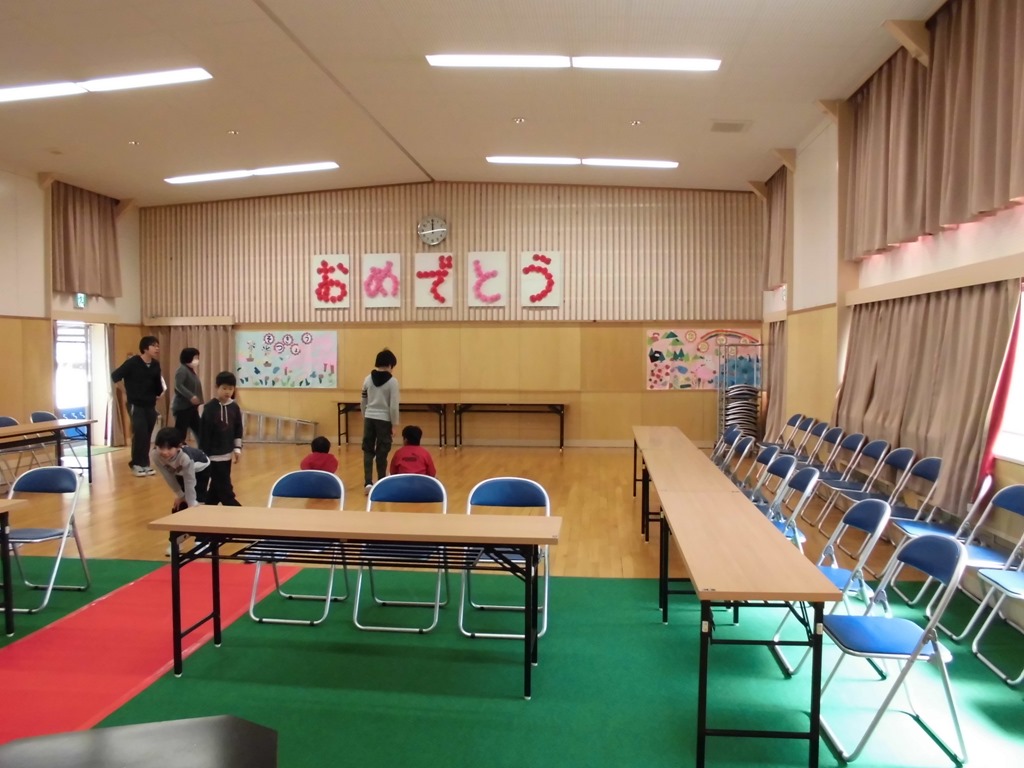 3月20日の卒業式に向けて、1~5年生12人と担当職員で、式場作りや廊下の飾りつけなどの準備をしました。