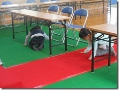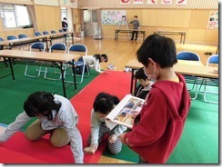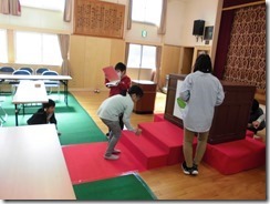1・2年生は、小さな身体で精一杯の力を出して長机や椅子を並べました。絨毯のごみやほこりも丁寧に取り除きました。