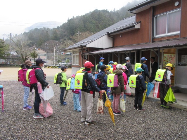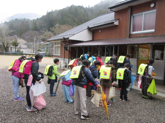 今日は、ランドセルを背負って通う最後の日でした。6年生の背中のランドセルは、小さく見えます。