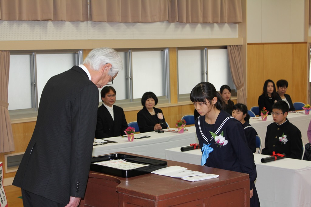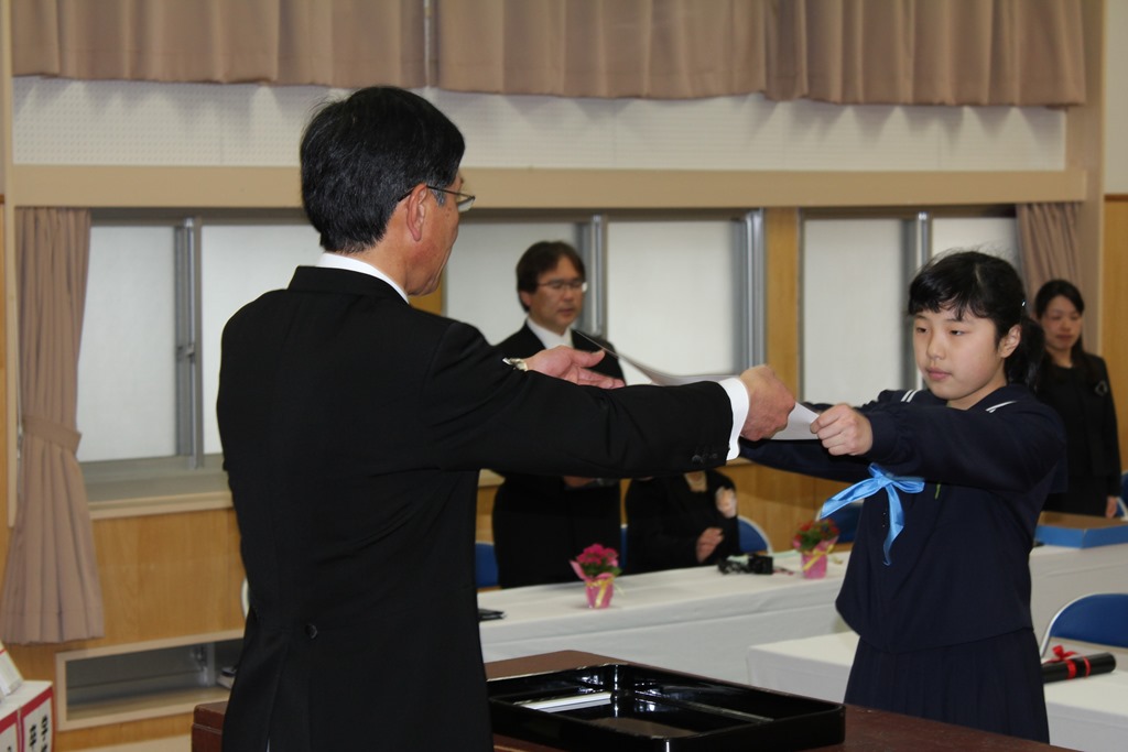 きっぱりとしたよい返事、凛とした姿勢から、6年間がんばった自信と希望に満ちた今後への決意か伝わってきました。6人とも格好よくて、光り輝くことをめざした学級訓の「光」のとおり、輝いていました。