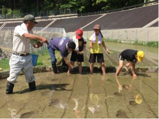 学校の近くでお米を作っている方の田んぼをお借りして、5・6年生が田植えをさせていただきました。植え方も丁寧に教えてくださいました。子どもたちはたっぷりと田植えを楽しみ、さらに、田んぼの周辺に住む様々な生き物も観察していました。自分たちが植えた稲の成長がとても楽しみです。毎日食べているご飯がどのようにして作られているのか、しっかり学べるといいですね。