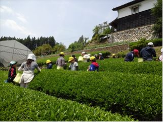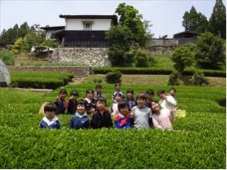 田内在住のG様のご厚意により、今年も茶摘みをすることができました。学校のお茶の木よりもきれいに手入れされた立派なお茶を、がんばって摘ませていただきました。このお茶は、地域に住む一人暮らしのお年寄りに配ります。