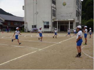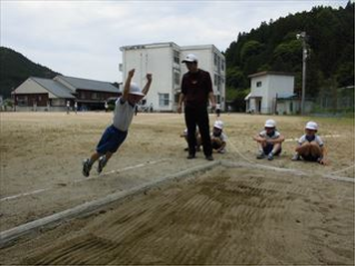 今年は雨に悩まされずに、予定どおり実施することができました。全員で50m走をした後、上学年と下学年に分かれて、ソフトボール投げと立ち幅跳びをしました。最後に中・高学年が20mシャトルランをしました。苦しくてつらい種目ですが、みんな歯を食いしばってがんばりました。低学年は、大きな声を出して、一生懸命応援しました。