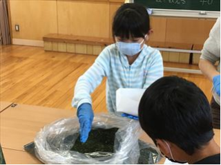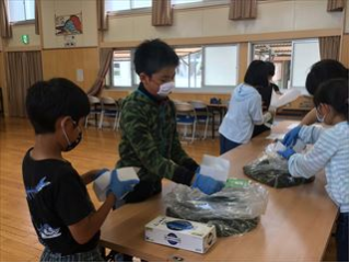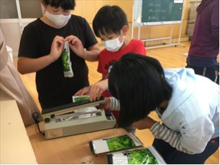自分たちが5月に摘んだお茶。今度は、お年寄りに配るために袋詰めをしました。重さを量り、こぼさないように袋に入れて、シーラーで密封します。全部で約50袋つくりました。お年寄りの皆さん、待っててね。
