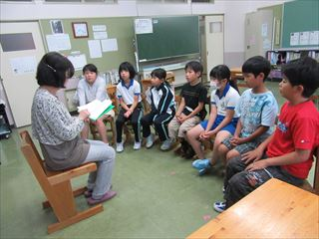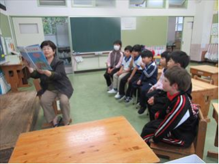 低学年は「さくらの木」、中学年は「魔女の宅急便2」という本を読んでいただきました。高学年は太平洋戦争中の清崎国民学校の様子を語っていただきました。