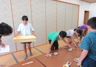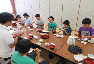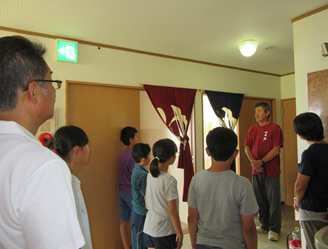 夜ごはんと入浴を終えてから、魚増のご主人から島の暮らしについての話を聞きました。島に届いている電気や電話線の話、佐久島の名産物の話、そして魚釣りの話、子どもたちは、次々と質問をして島の暮らしに興味をもち、たくさん学ぶことができました。