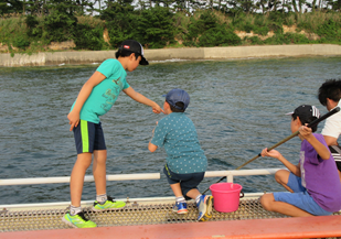 ところが、30分、1時間・・・いくら待っても釣れません。あきらめかけたその時、なんと3人の子が魚を釣り上げました。「次は自分が釣るぞ!」と、どの子も思いを強くした1日目の釣りでした。