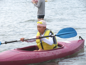 午前中にシーカヤックをしました。はじめはなかなかうまくいかずに苦戦していましたが、慣れてくると上手に乗りこなせるようになっていきました。