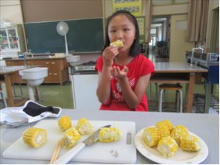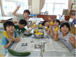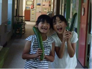1学期に植えた野菜が実り、収穫して味わった学級もありました。鳥や獣に取られないように網をかぶせておいたので、おいしい野菜が採れました。