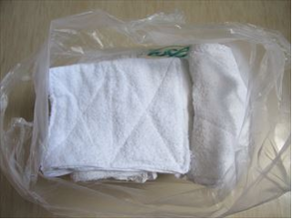 地域の温泉旅館「芳泉荘」の方から、雑巾をたくさんいただきました。学校では毎日雑巾を使いますので、とても助かります。