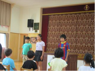 「下級生にいろいろ教えてあげたいです。」などなど、きらりと光るスピーチをたくさん聞くことができました。大勢の人の前で話すのは緊張しますが、こういう経験を繰り返すことで度胸がつき、本番で力を発揮できる人になります。原稿を考え、覚えて練習する課程で表現力やコミュニケーション力も高まります。学芸会で、毎年素晴らしい演技ができるのも、こうした活動の積み重ねの成果だと思っています。