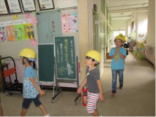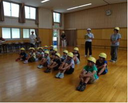 地震を想定した避難訓練を行いました。天気は良かったのですが、運動場がゆるかったので、今回は講堂に避難しました。「お・は・し・もが守れた人?」と聞いたら、全員が手を挙げました。みんな、黙って、落ち着いて避難することができて、とても立派でした。いつ起きてもおかしくないと言われている、南海トラフ地震が発生しても、落ち着いて行動できるようにしたいですね。