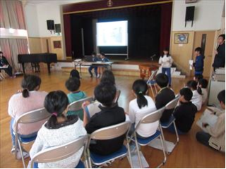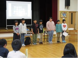 川を守る活動をしている3つの小学校が集まって、報告会をしました。本年度は清嶺小学校が会場でしたので、豊橋市立大村小学校の4年生33名と、新城市立舟着小学校の4年生10名が、遠路はるばるやってきてくれました。どの学校の発表も、とてもすばらしい内容でした。学校の近くを流れている川はどのくらいきれいなのか、どんな生き物がどのくらい棲んでいるのか、川を守っていくために自分たちはどんなことをしていけばよいのか等、学んできたことを堂々と発表していました。