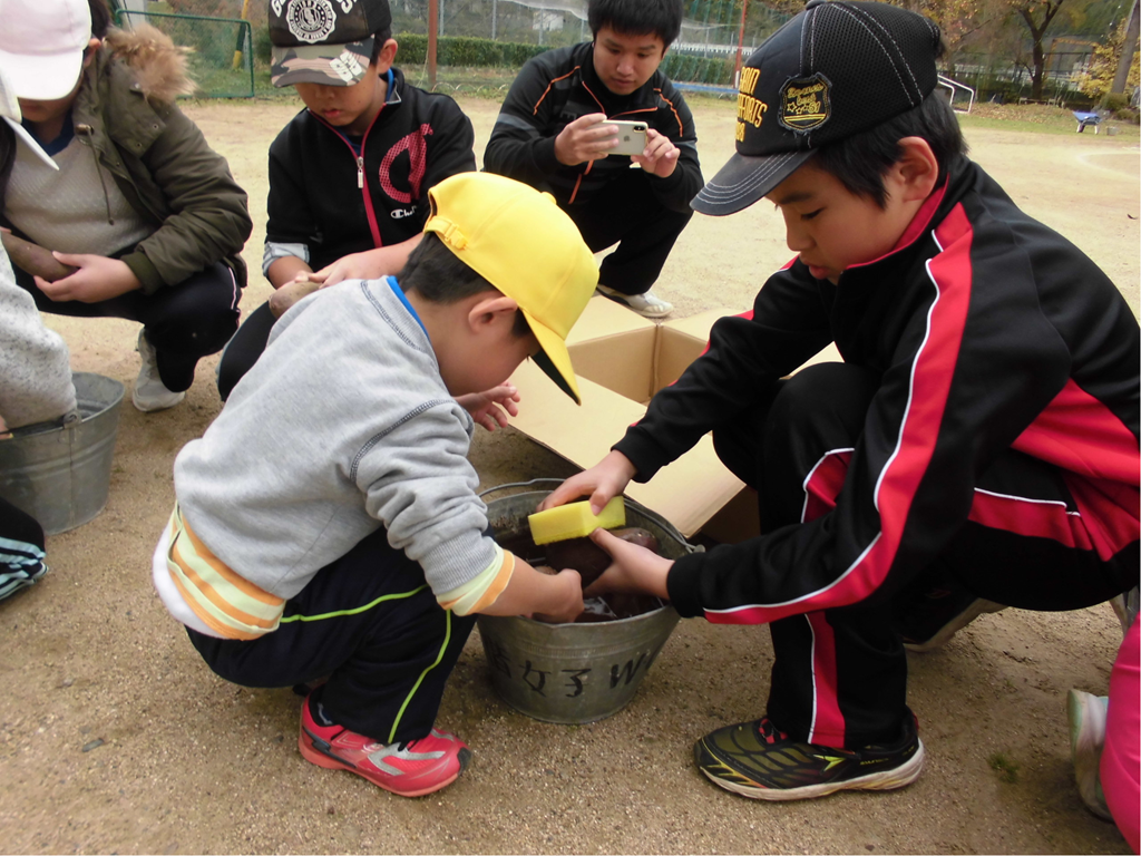 午前中は小雨がパラつき、開催が危ぶまれましたが、子どもたちの願いが天に届き、無事に焼き芋会を実施することができました。健康委員会がやり方を説明した後、みんなで芋をきれいに洗い、濡れた新聞紙とアルミホイルで包み、火の中に入れて落ち葉をかぶせました。今回も、上級生が下級生の面倒を見る温かい光景が見られました。その後、5時間目、6時間目の授業をしている間、集めた落ち葉の中でじっくりと焼かれた芋たちは、とてもおいしい焼き芋となって現れました「私はさつま芋が嫌いです」と言っていた子も、「この芋はおいしいです」と喜んで食べていました。苗(ツル)を植えるだけでこんなにおいしい焼き芋が食べられるなんて、何と幸せなことでしょう。ちなみに、健康委員会は、芋を準備する手順を写真に撮って掲示するなど、分かりやすく説明するために工夫しました。また、ある子は、体調が悪くてマラソンの練習ができなかったとき、せめて何か自分にできることはないかと、全員分のアルミホイルを、ちょうどよい大きさに切ってくれました。そのおかげで、今日の作業がスムーズにできました。清嶺小の子どもたちのすばらしい姿を、今回も見ることができました。