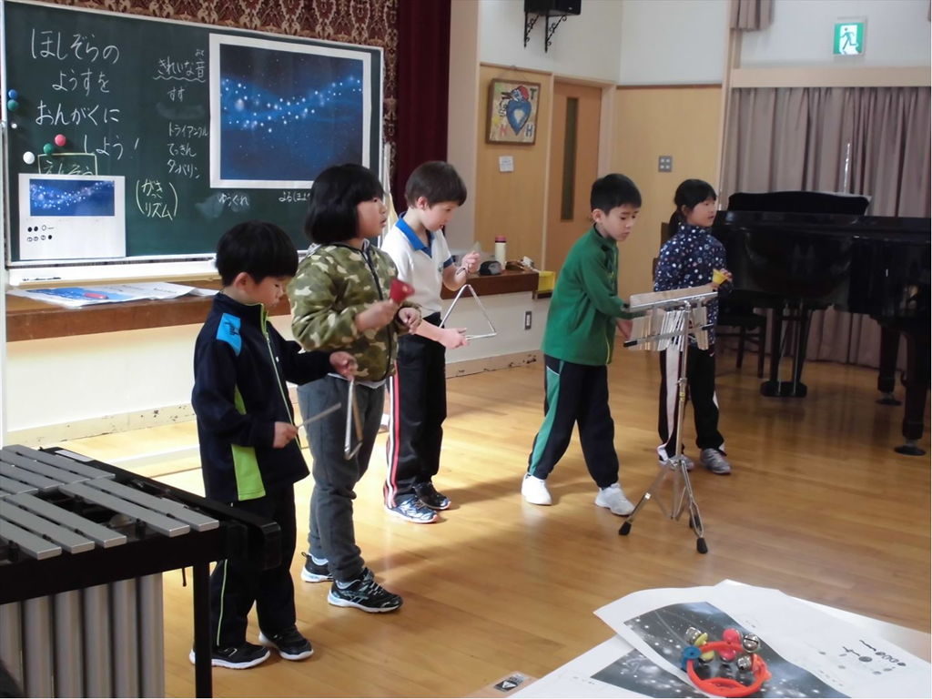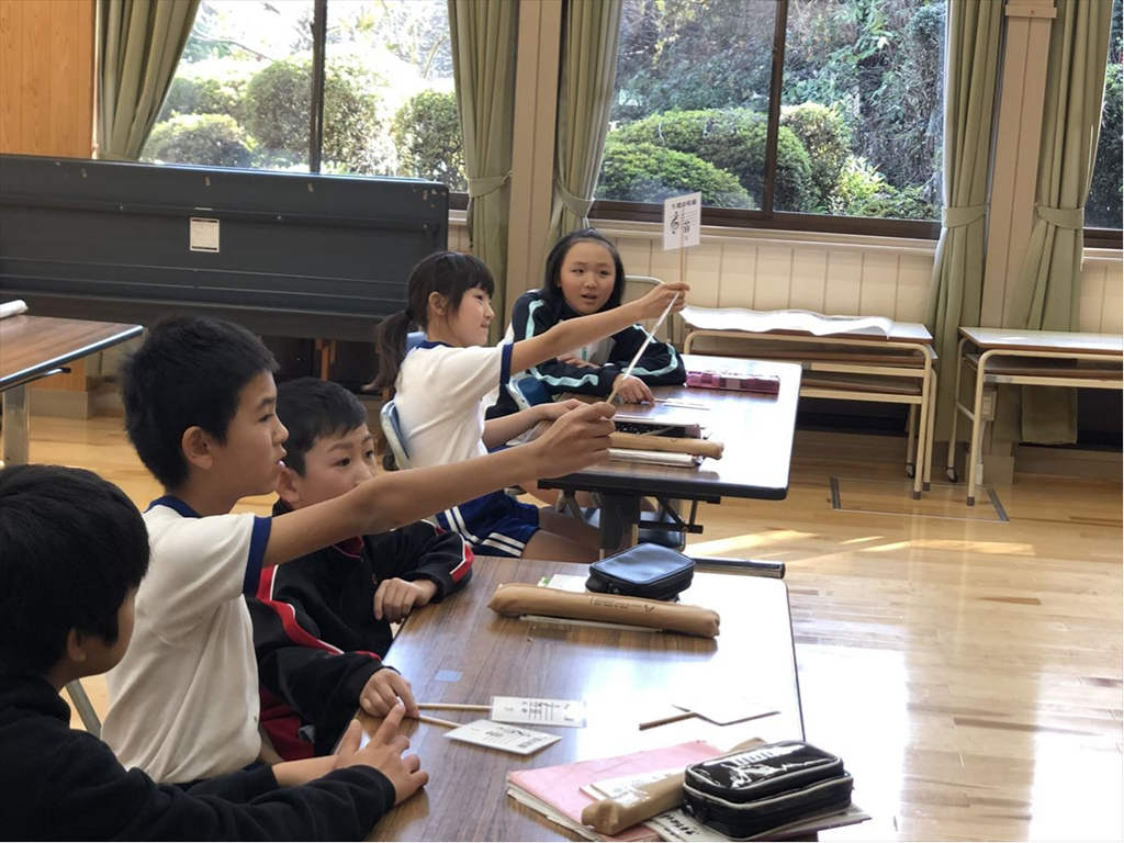 低学年の音楽は「リズム作り」体育は「ならびっこキックベース」 中学年の音楽は「ゆかいな木琴」と「まきばの朝」体育は「ラインサッカー」 高学年の音楽は「威風堂々」体育は「ティーボール」をしました。 田峯小と清嶺小の子どもたちはお互いにとても仲良しになっていましたので、みんなこの日をとても楽しみにしていました。一緒に活動をしたり、話し合ったり、見合ったり、感想を伝え合ったりと、いろいろなスタイルで学習を進めました。来年度は、また、学年の組み合わせが変わるので、新しいメンバーで楽しく学習したいですね。