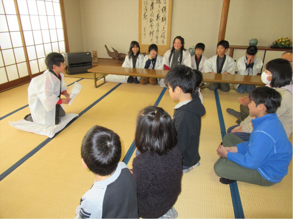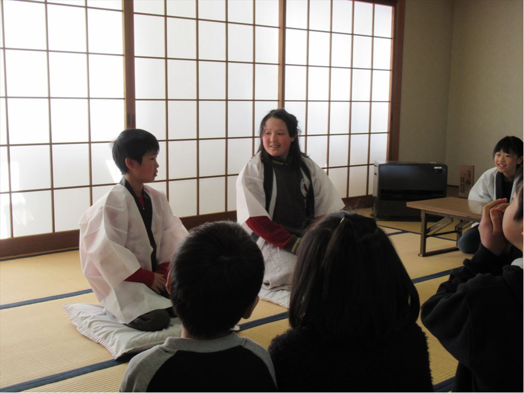 3・4年生が、国語の授業で学習した落語を他の学年に発表したいということで、休み時間に発表会を企画してくれました。昔の言葉遣いと現代の言葉遣いの2通りのパターンで披露してくれました。「いつ覚えたの?」「いつ練習したの?」と思うほど、流暢で、表情豊かで、ジェスチャーも交えて、とても上手でした。ぜひ、またいつか、新ネタを披露してほしいと、みんな思いました。