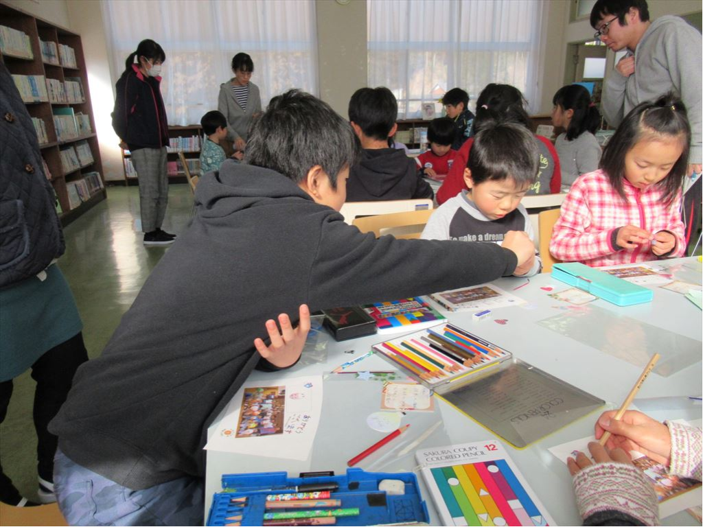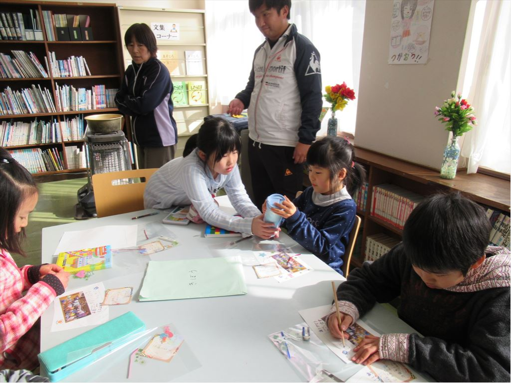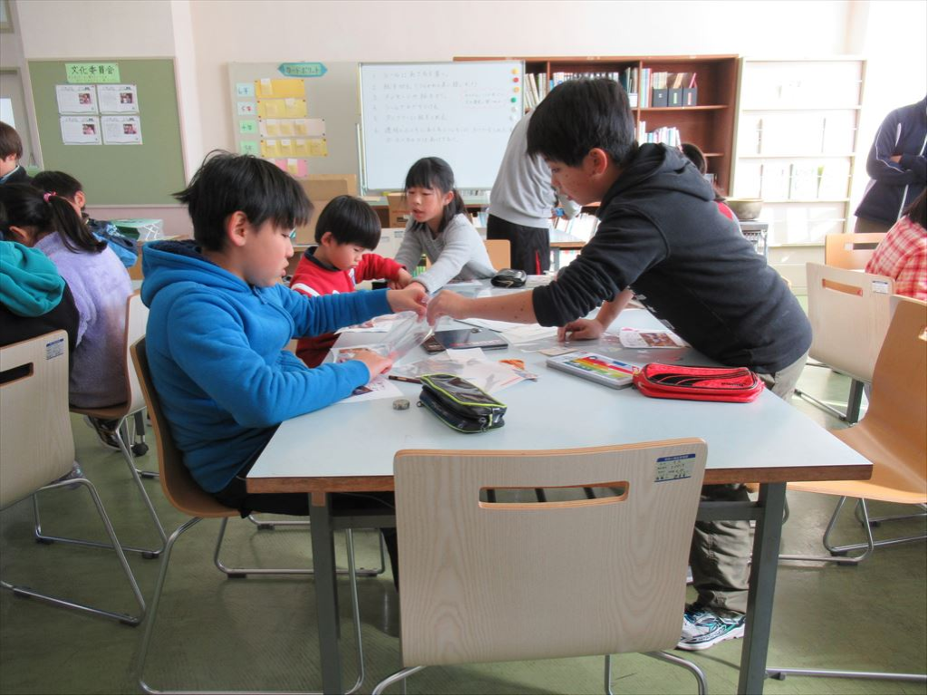 2月14日に「ありがとうの会」(お世話になった方々に感謝の気持ちを伝える会)を実施します。そのときに渡すプレゼントをつくりました。縦割り班ごとにテーブルを囲み、文化委員会が考えたプレゼントをみんなでつくりました。二重構造のタンブラーに写真やメッセージを入れて、心を込めてつくりました。子供たちの真剣な姿から、喜んでもらえるようなプレゼントをつくりたいという気持ちが伝わってきました。上級生が下級生に教える姿も頻繁に見られました。このような活動を通して、子どもたちの心が育っていくのを感じます。