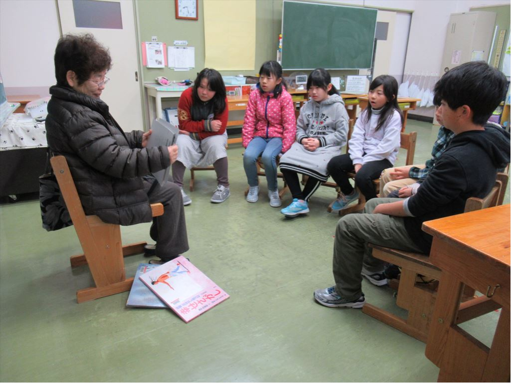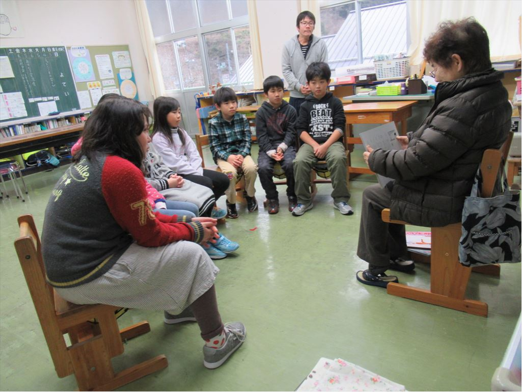 本年度最後の読み聞かせ会がありました。低学年は『おにたのぼうし』を、中学年は『幸せさがし(紙芝居)』と『手ぶくろを買いに』を、高学年は『菅沼太平記(手作り漫画)』を読んで下さいました。子どもたちのために、手間隙かけて本を選び、寒くても雨が降っていても忘れずに来てくださるふれあい会員の方々に、改めてお礼申し上げます。