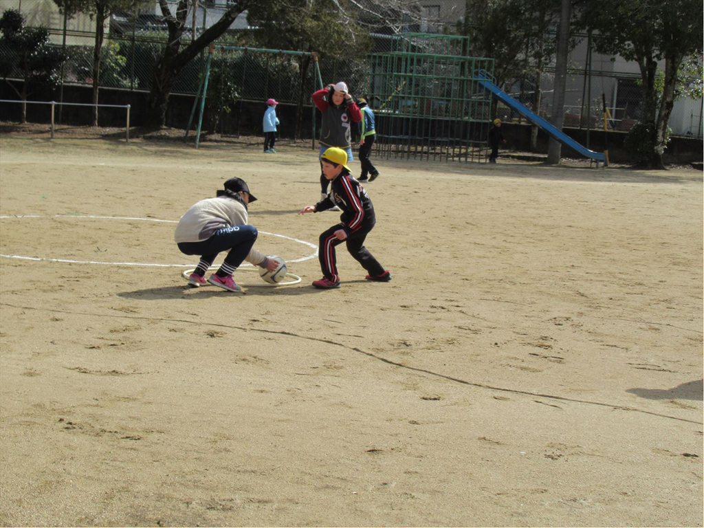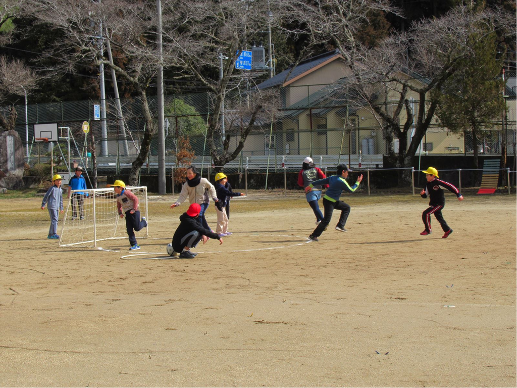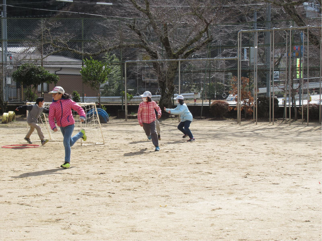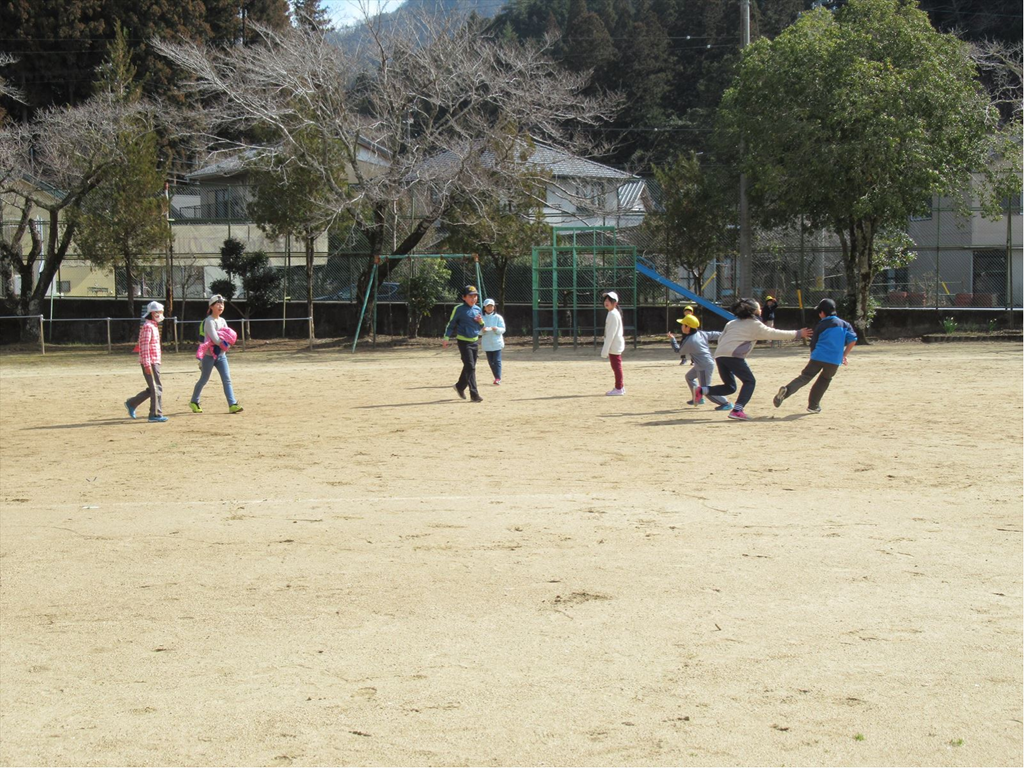 今日のなかよしタイムの遊びは「ドロケー」でした。泥棒12人、警察5人。ちょっと泥棒が有利なようにも見えましたが、みんな楽しそうに運動場を走り回っていました。
