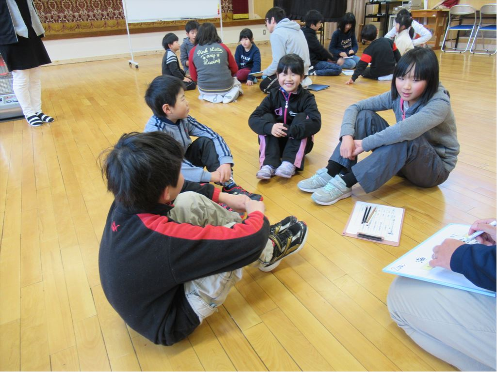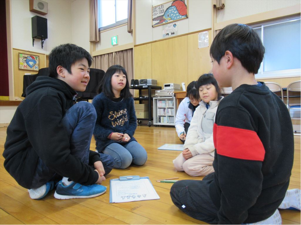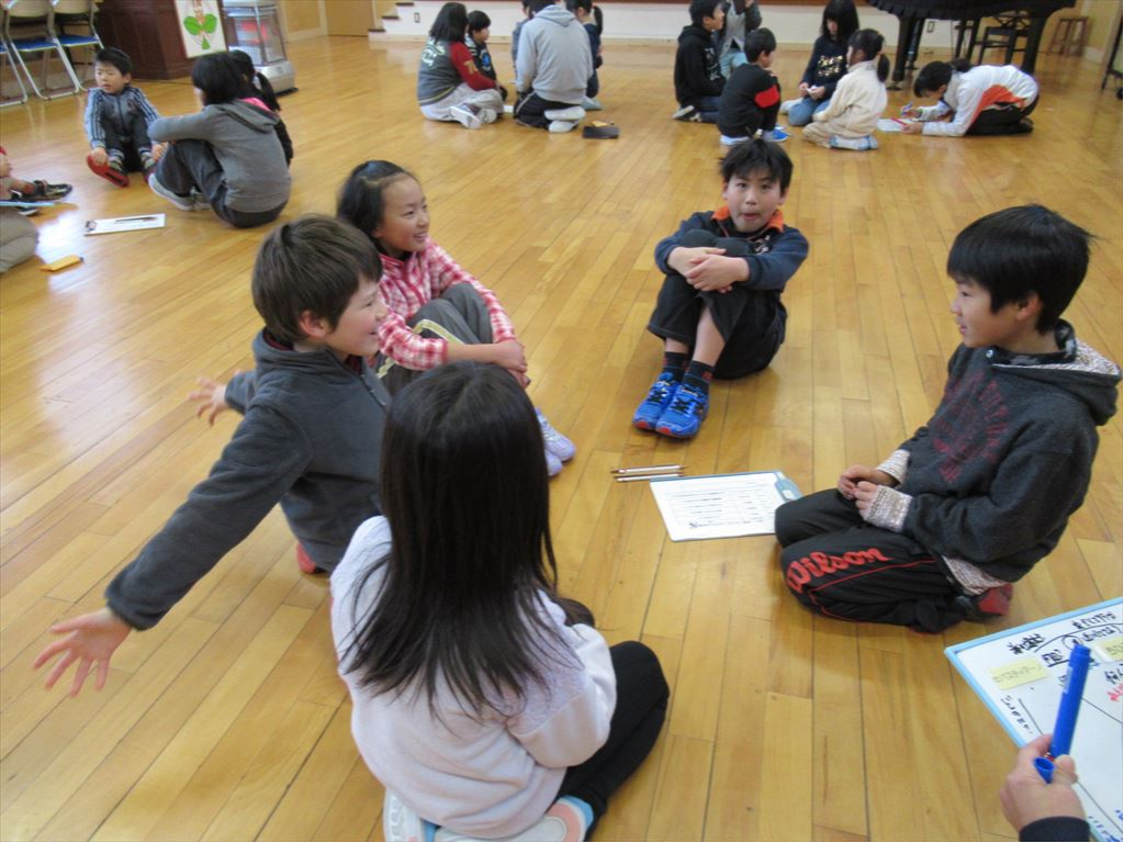 今日のテーマは「遊びに行くなら海か川か」です。どうして海がいいか、どうして川の方がいいのか、そんな話からスタートし、互いに質問しながら話を広げていきました。相手の話につなげて話す力が少しずつ高まってきていると感じました。