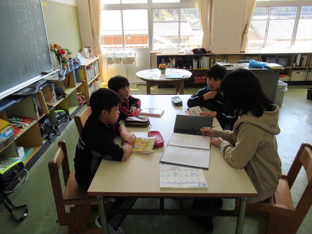 本年度最初のアクティブタイムがありました。一輪車の練習をする子、離任された先生方へ手紙を書く子、委員会で集まって話し合いをする子などがいました。1年生は、養護教諭が歯みがきの仕方を説明しました。