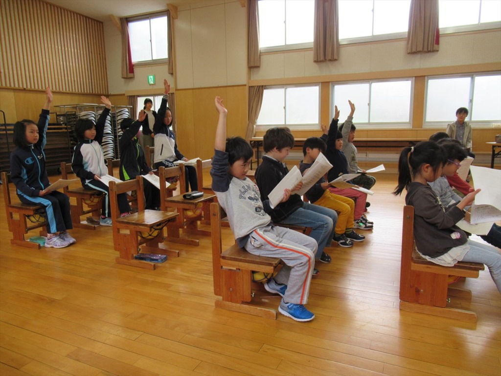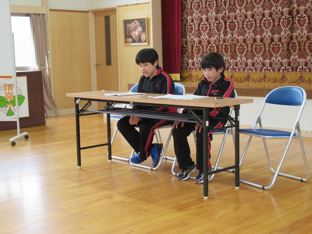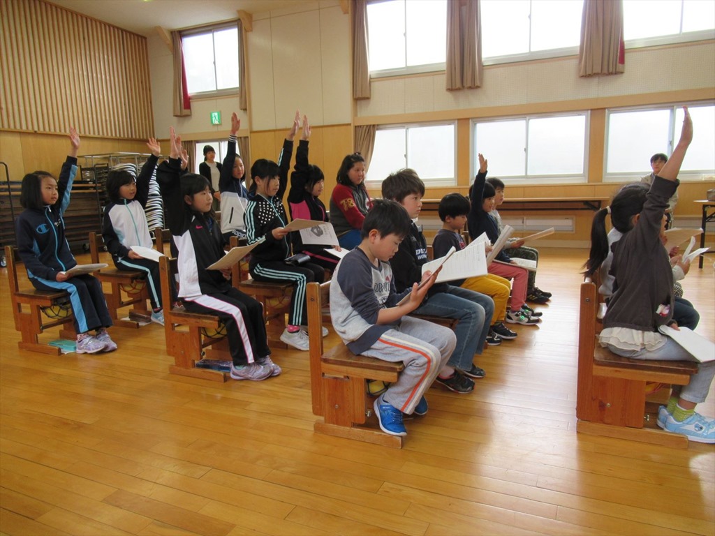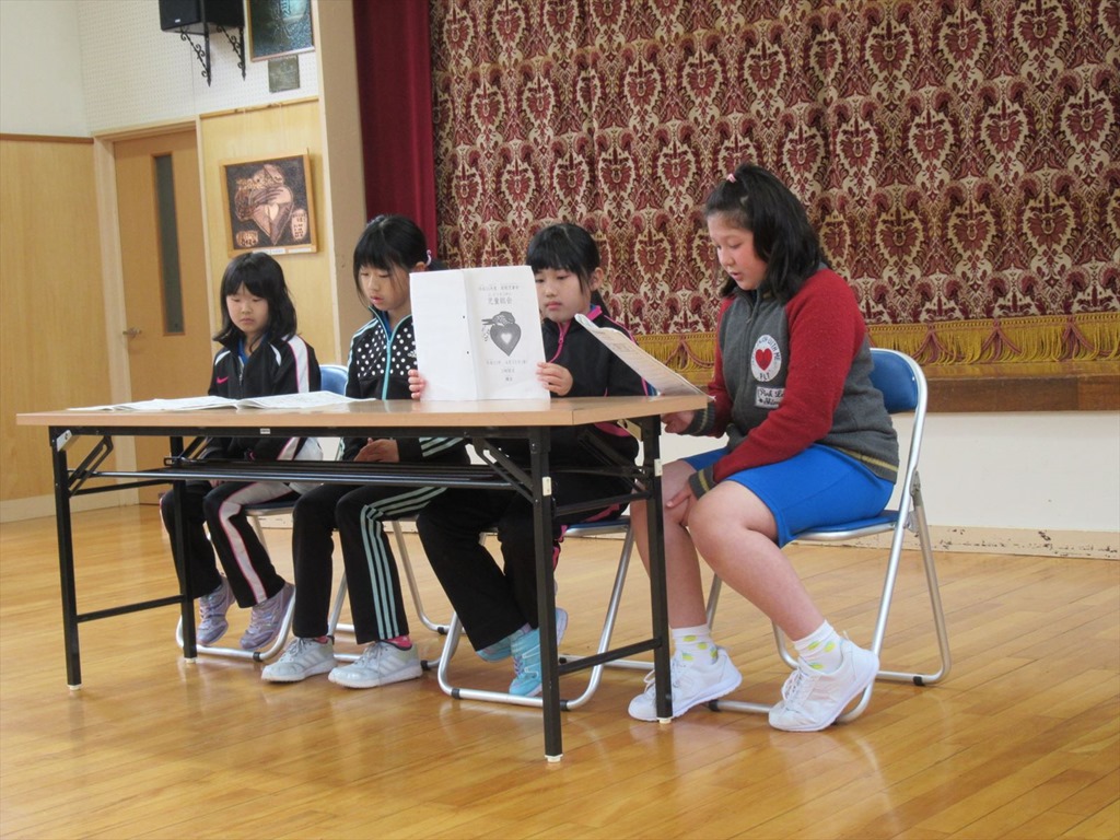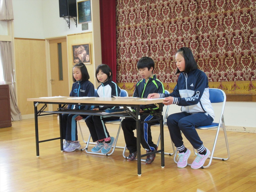 前期児童総会が行われ、3つの委員会から、前期の活動計画の提案と質疑応答がありました。ほとんどの子が手を挙げて意見や質問を言うことができました。