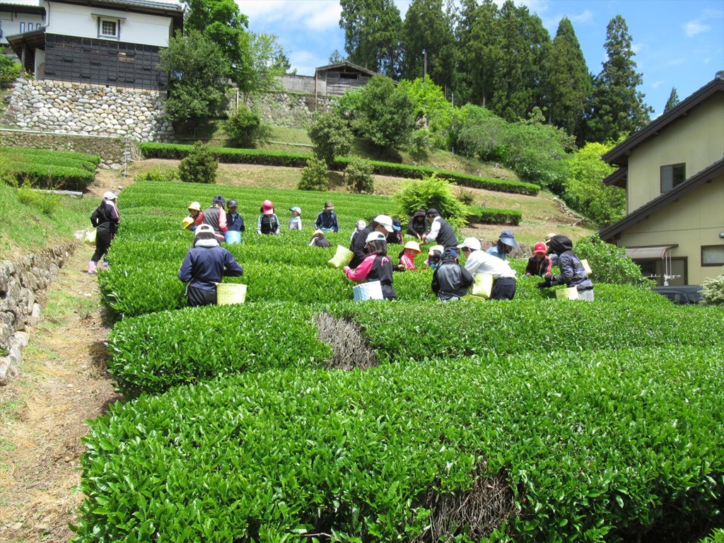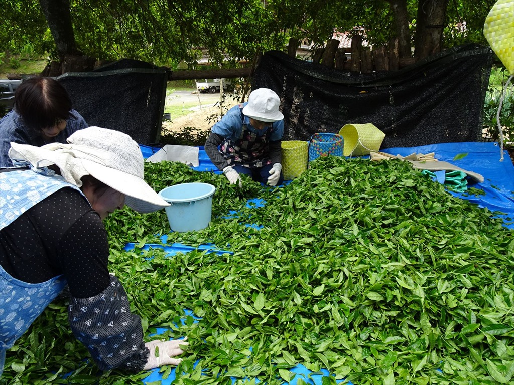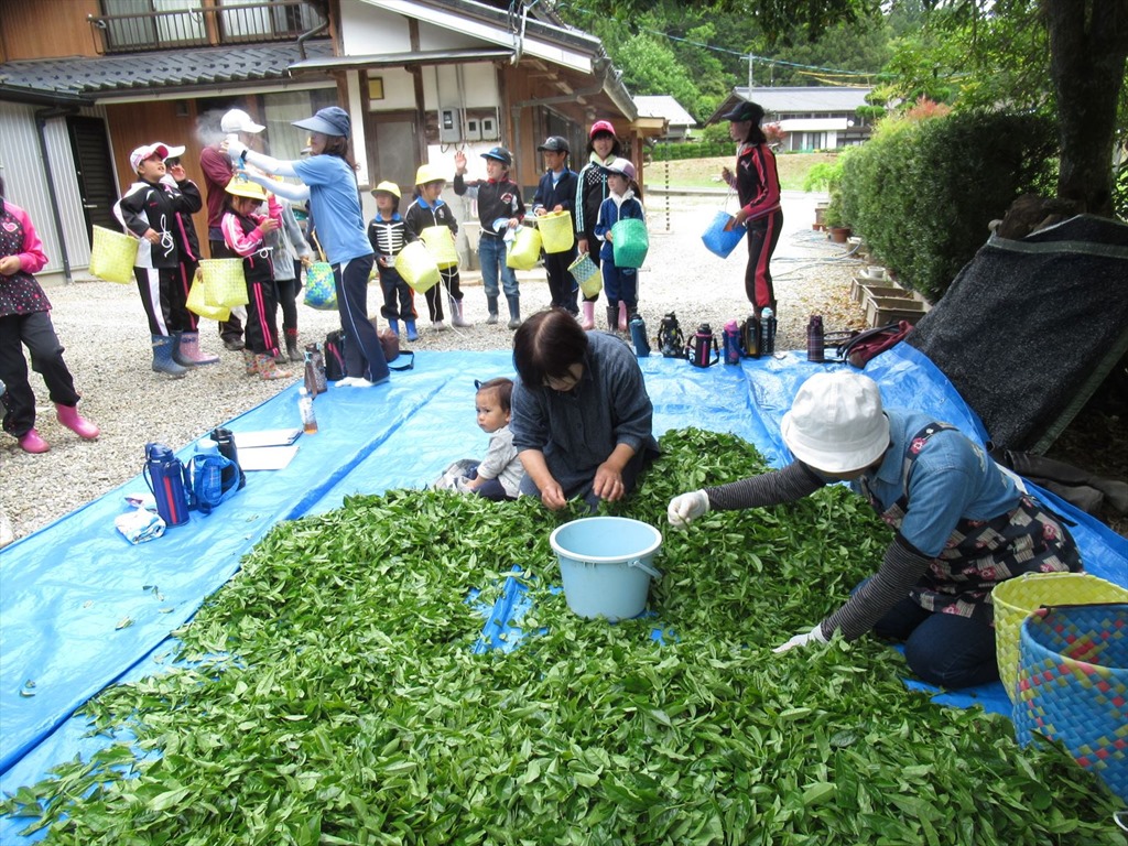 本年度2回目の茶摘み。今回は46kg摘みました。がんばりました。