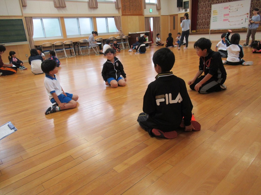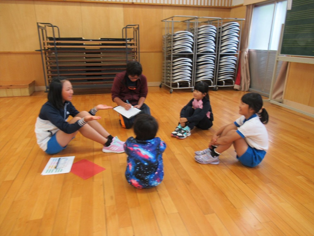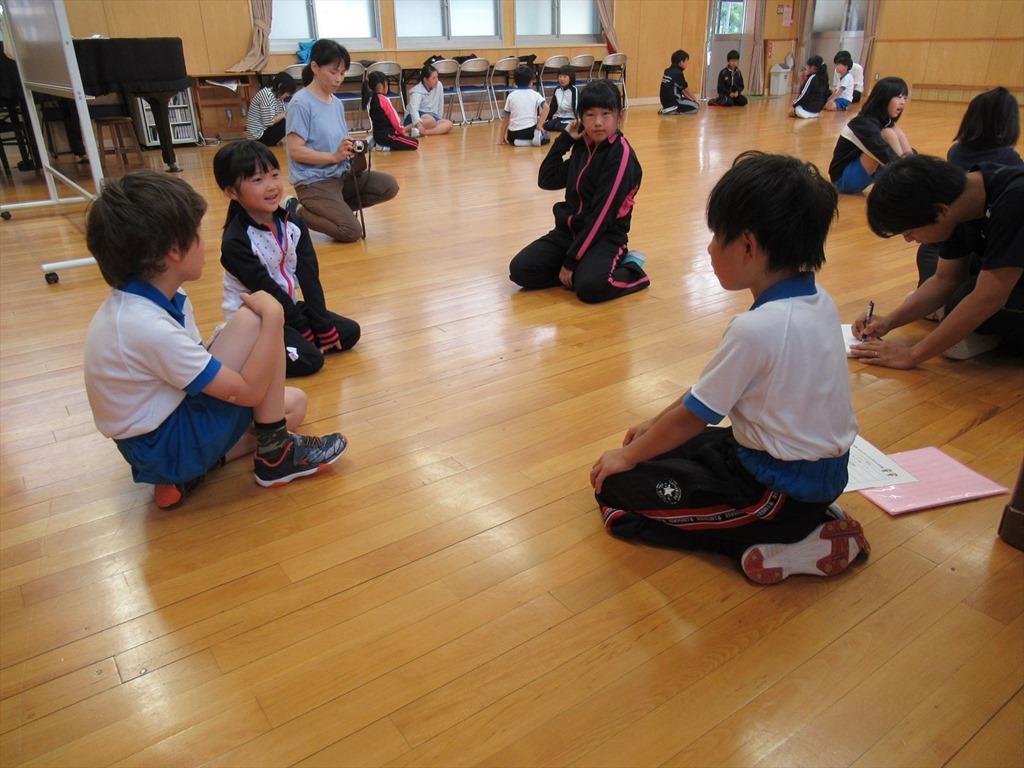 今日は、今までよりも少し輪を大きくして行いました。その分、大きな声で話すことができ、お互いの話が良く聞こえるようになりました。