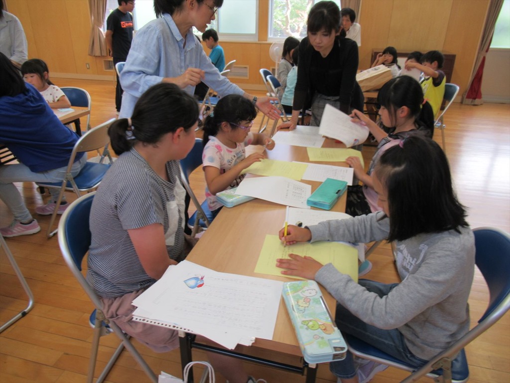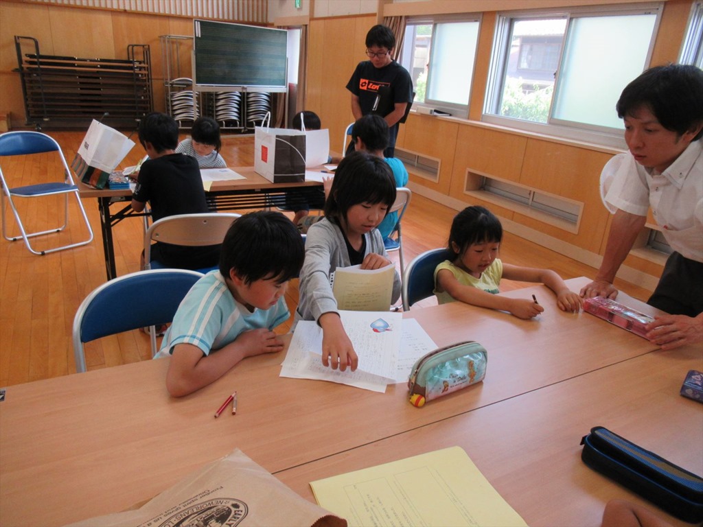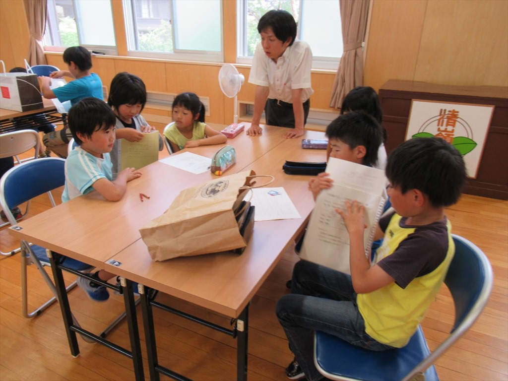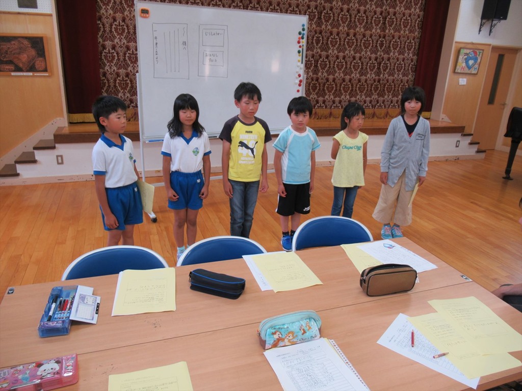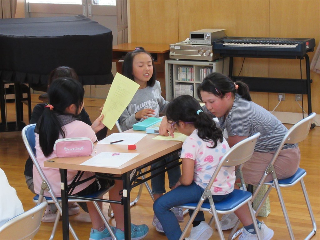 25日のお茶配りに向けて、班ごとに分かれて打ち合わせをしました。誰が誰に渡すのか、どんなふうに説明するのか、どんなお話をするのかなどを決め、練習もしました。