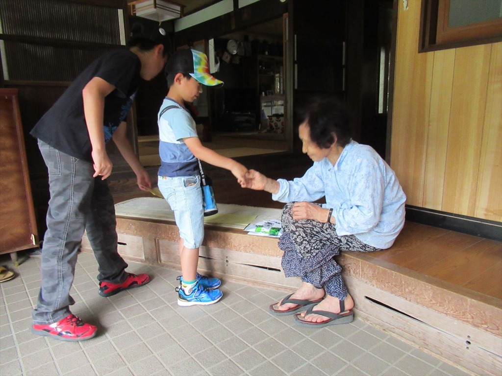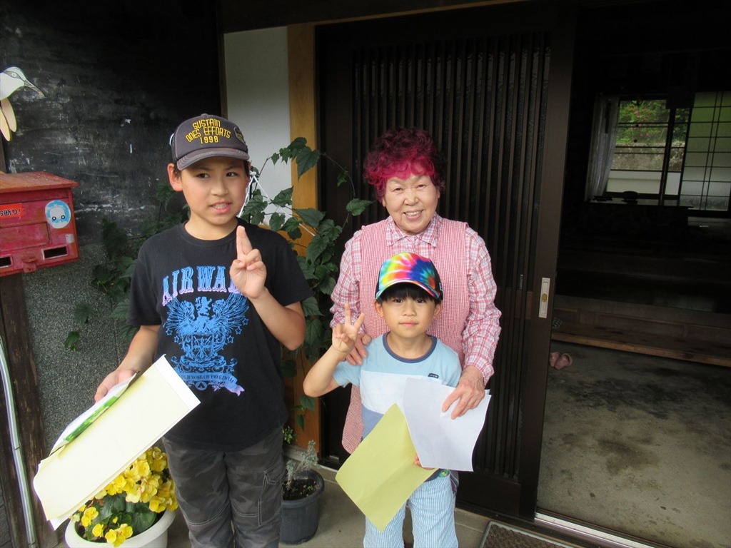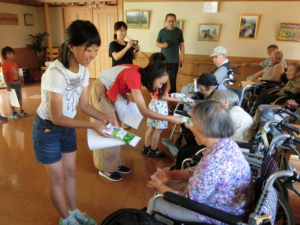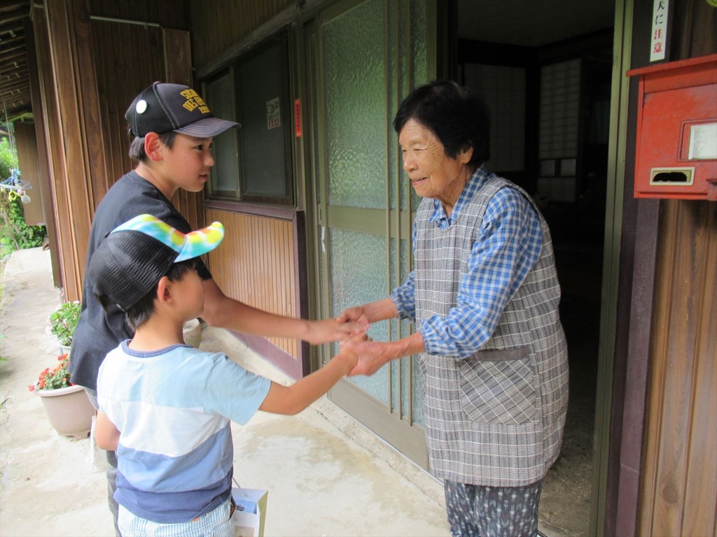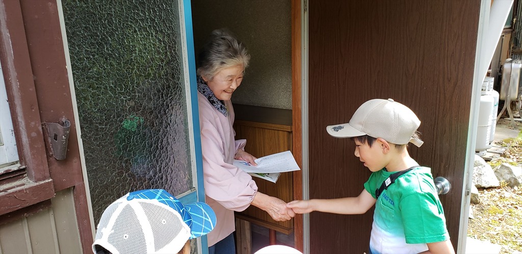 通算66回目のお茶配りを行いました。上級生と下級生が組になって、手分けして校区のお年寄りの家を訪ねました。