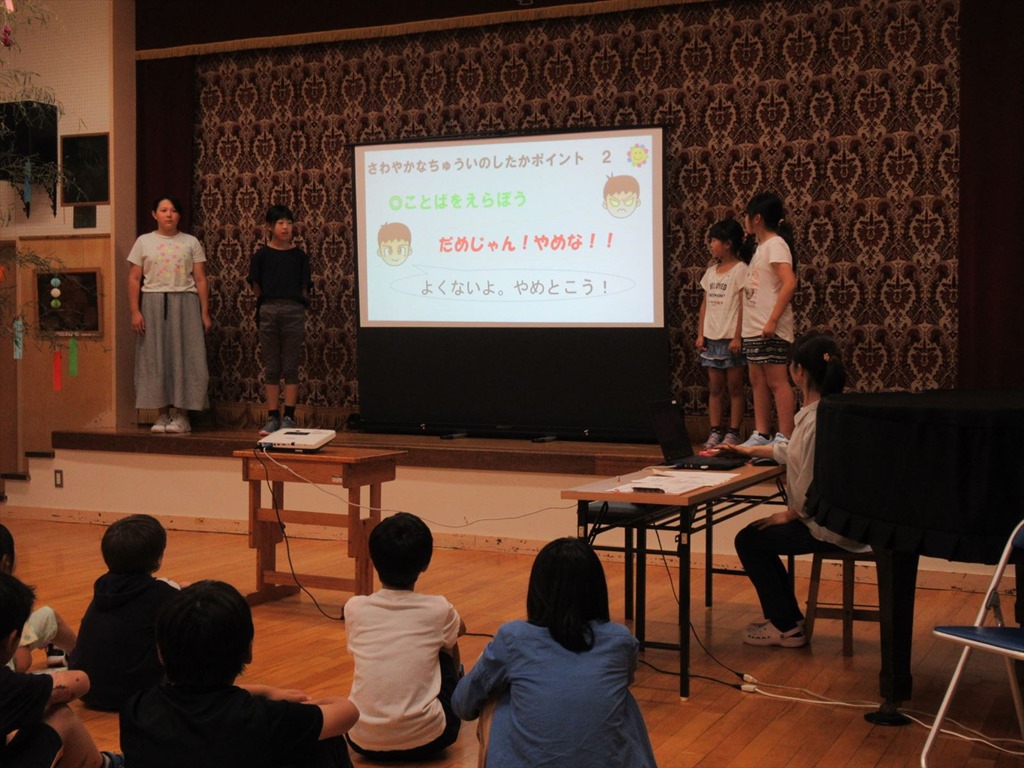 「さわやかな心~元気に過ごそう清嶺っ子」をテーマに、健康委員会の子が劇を披露したり、子供同士でロールプレイをしたり、スクールカウンセラーの先生のお話を聞いたりしました。アサーション(相手も自分も傷つけないコミュニケーション)について学びました。
