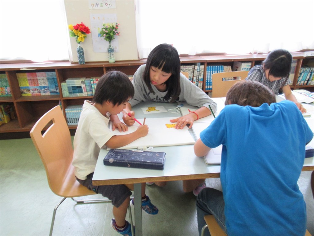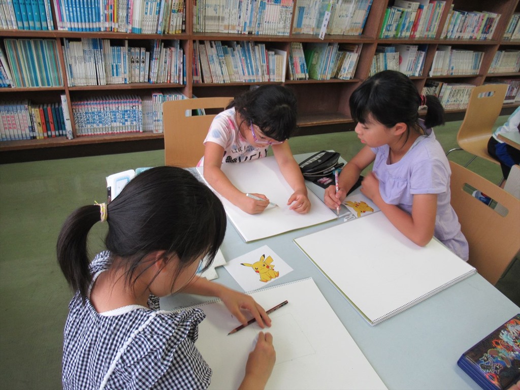 本年度1回目のスケッチタイムは、みんなでピカチューの絵を描きました。上級生が下級生の面倒をよく見てくれるので、みんな上手に描くことができました。