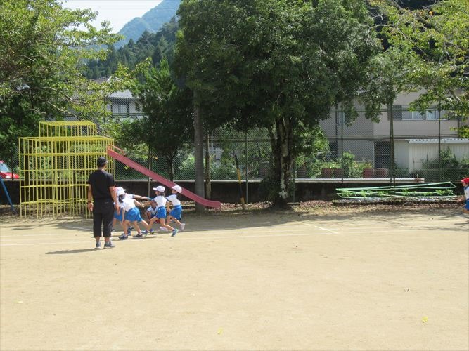 気温が高くなり、熱中症が心配されるほどの暑さになりました。テントを出して、その中で準備運動をしたり、教師の話を聞いたりすることで、日光に当たる時間が短くなるように工夫して練習しています。