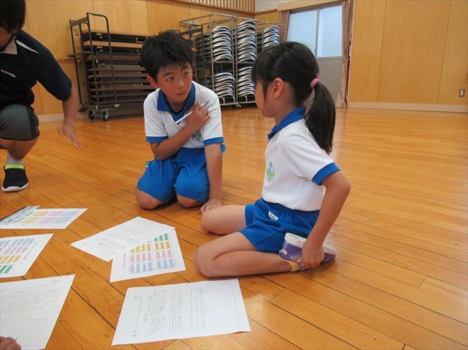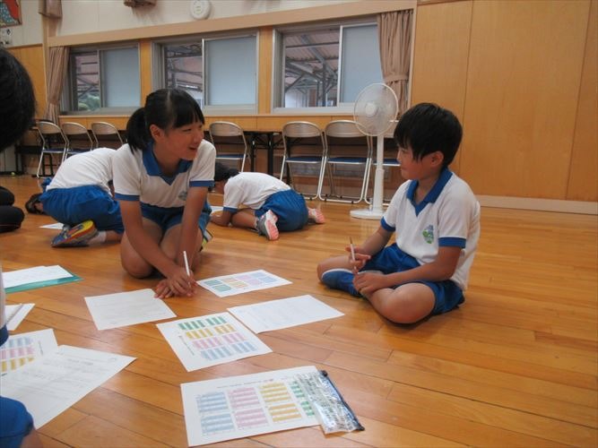 今回は、グループごとに振り返りをしました。うなずきながら聞く、話をつなげるなど、コミュニケーションの力が少しずつ高まってきているのを感じます。