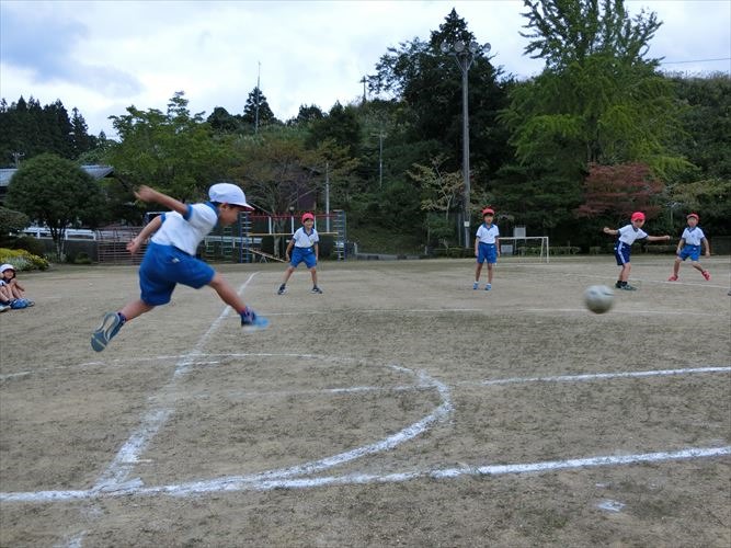 低学年と中学年は田峯小学校で、高学年は清嶺小学校で行いました。雨が心配されましたが、外で体育ができてよかったです。