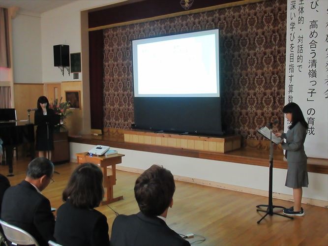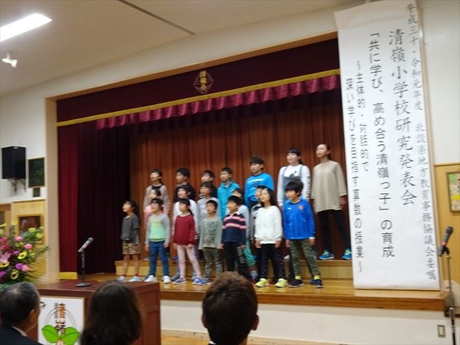 北設楽郡内外から86名の先生方が授業を見に来てくださいました。清嶺小の合唱の声の美しさ、表情のよさ、授業に取り組む姿勢、子ども同士で話し合って学びを進めていく姿など、いろいろなところを褒めていただきました。