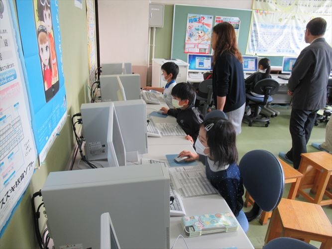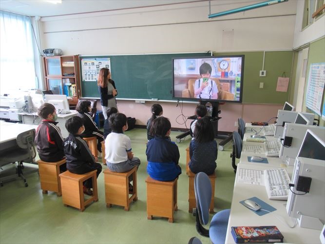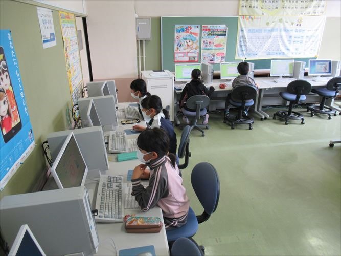 ICT支援員さんのご指導のもと、パソコンを使った学習をしました。1・2年生は、ネットの危険性を知る学習をしました。