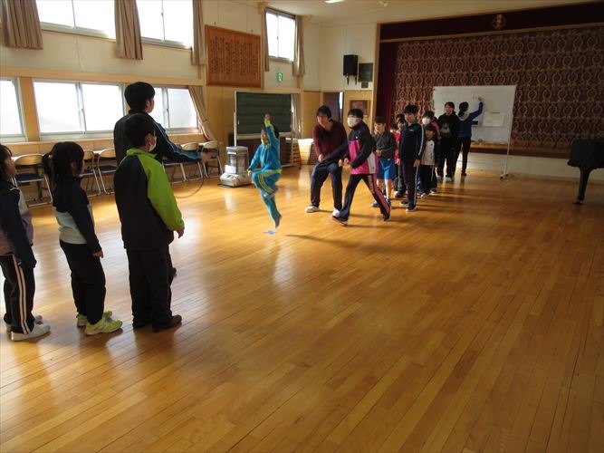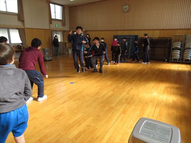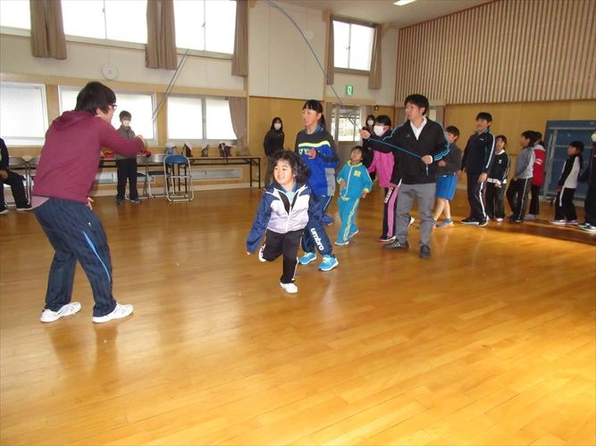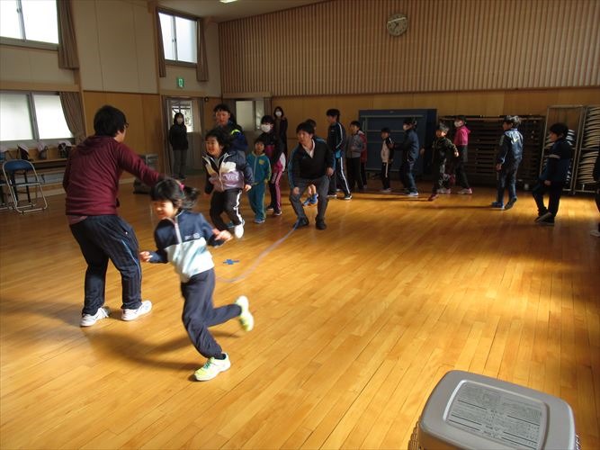 今日の目標は190回でした。結果はなんと、248回でした。前回の記録181回を大きく越えたすごい記録が出ました。前回は連続では入れなかった子が大勢連続で入れるようになっていたし、前回時々引っかかっていた子が引っかからずに跳べるようになっていました。これまで、放課によく練習したんだなということが伝わってきました。上級生が下級生に跳び方を教える場面もありました。次回の目標は260回に決まりました。