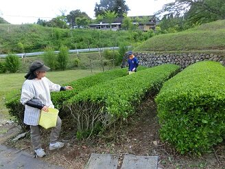 地域の方の茶畑をお借りして、お茶摘み体験をしました。高学年は手慣れていて、何度もかごをいっぱいにしていました。